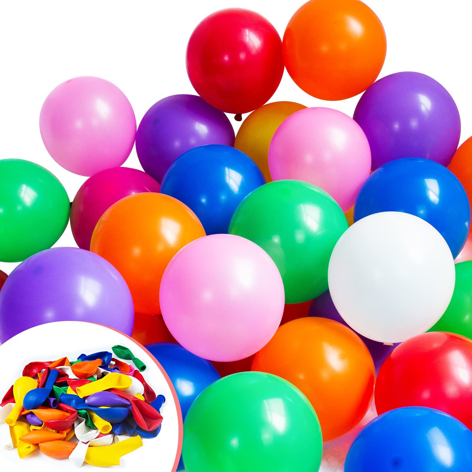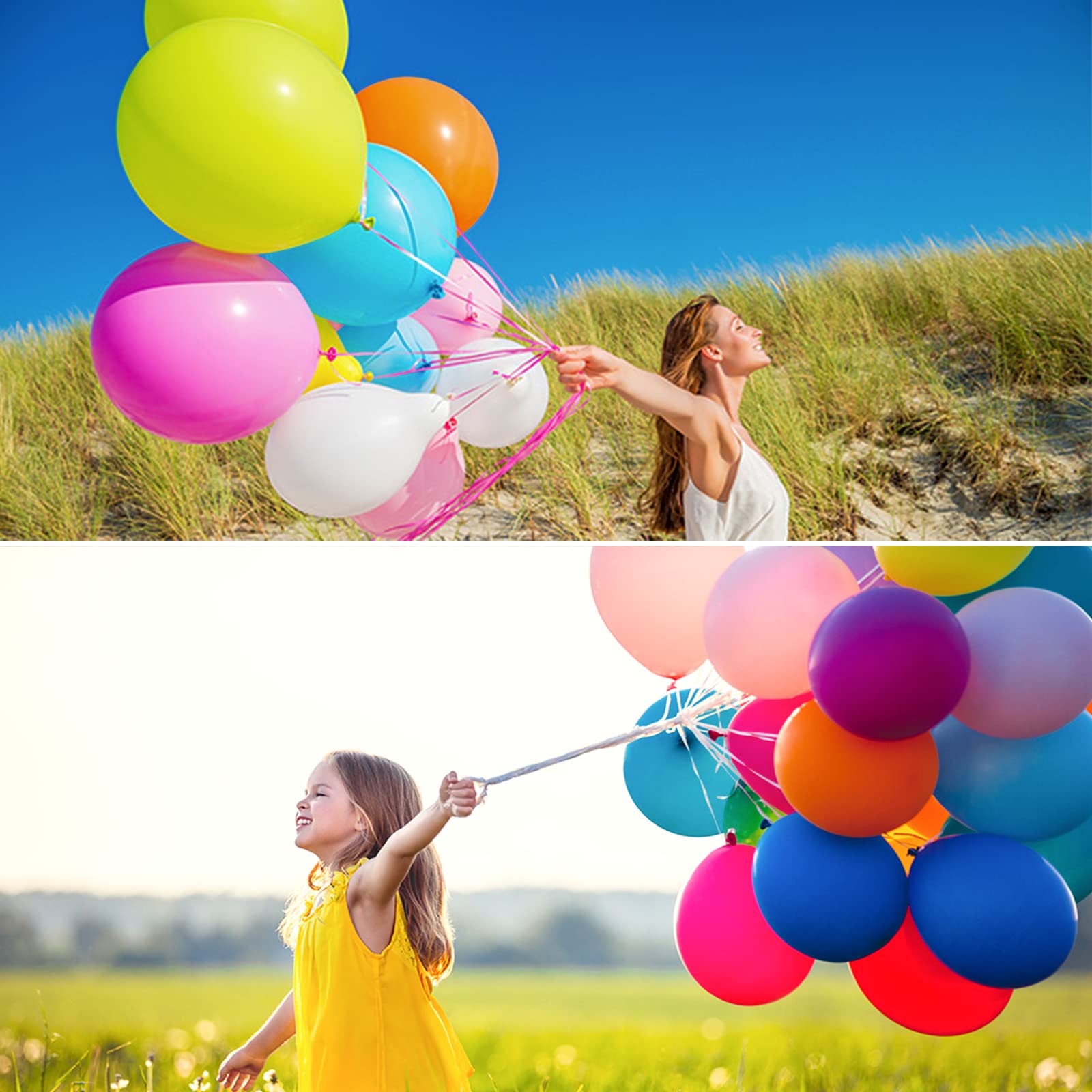 WHAT YOU GET:Includes 100pcs 12-inch Strong Balloons, 2 rolls of balloon ribbon(Total length 65 feet)These multicolored balloons weigh 2.8 grams each, Enough quantity can meet your daily life, festival or party decoration needs.