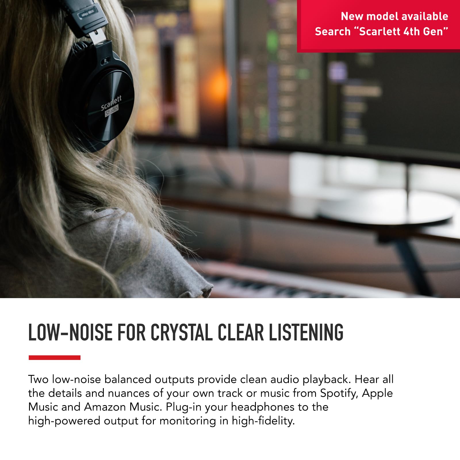 Low-noise for crystal clear listening - 2 low-noise balanced outputs provide clean audio playback with 3rd Gen. Hear all the nuances of your tracks or music from Spotify, Apple & Amazon Music. Plug-in headphones for private listening in high-fidelity