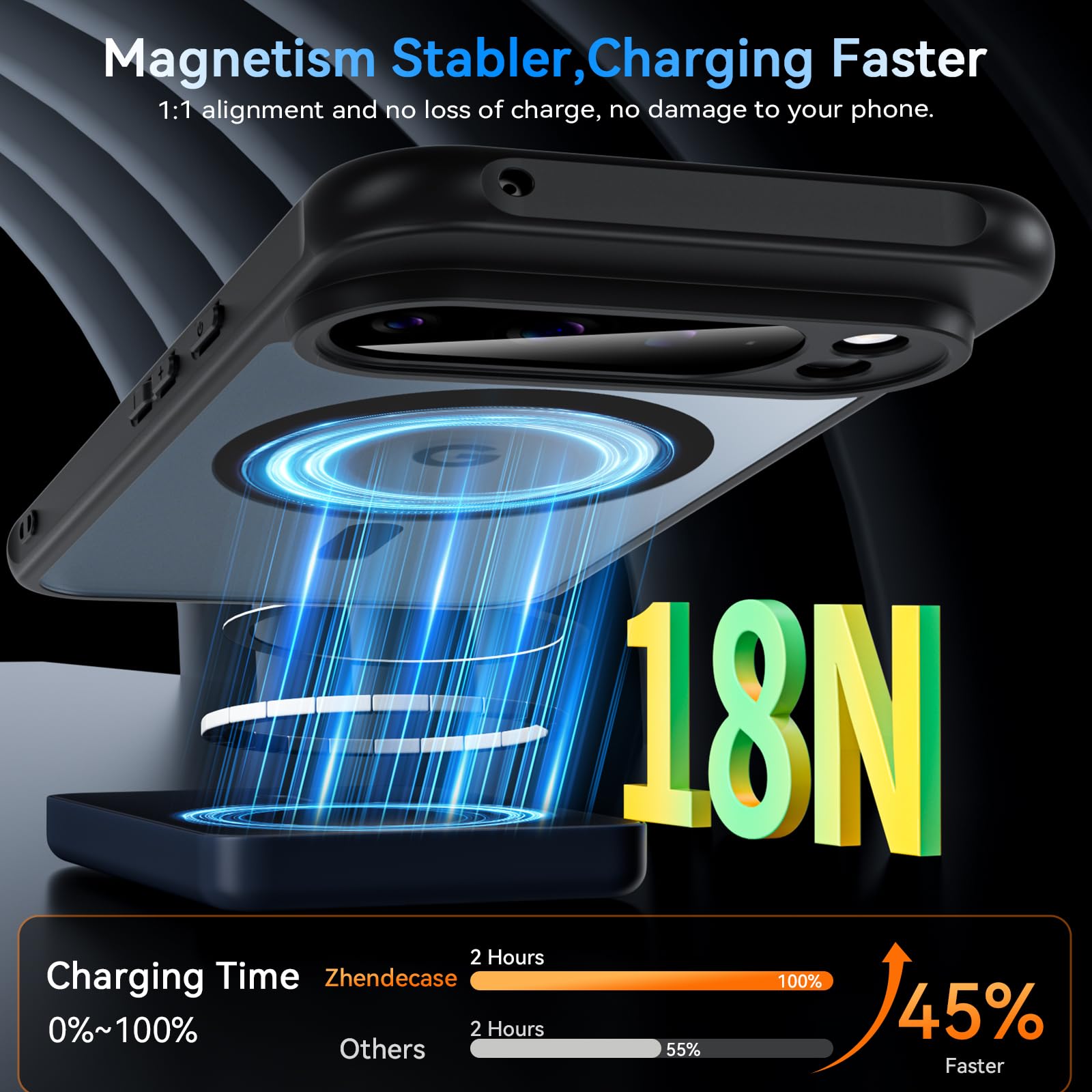 Super Strong Magnetic Adhesion: A built-in high-density magnet array ensures secure magnetic attachment, perfectly adapting to MagSafe accessories. Wireless charging is efficient and pop-up-free, ensuring reliable attachment for everyday use, eliminating the worry of falling off.