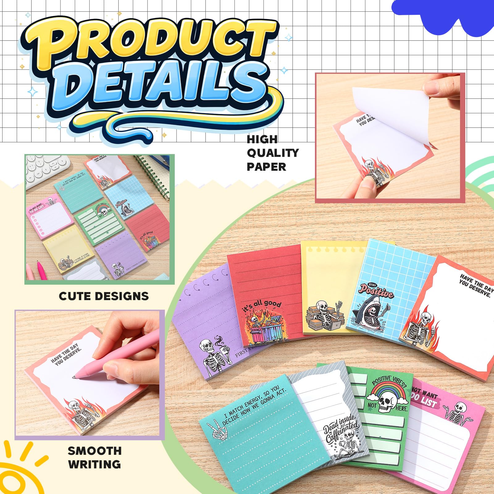 Exceptional Gift Choice: These skull sticky notes make a creative and thoughtful gift for friends, family, or colleagues who love all things quirky and ironic. Whether it's a birthday, holiday, or important occasion, these sticky notes will add a touch of fun to their daily to-do list in a delightfully darkly humorous way