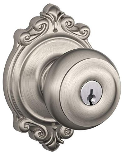 Schlage, B60N-BRK, Keyed Entry, Brookshire, Deadbolt, Single Cylinder, Decisively Victorian in appearance, the elaborate detail in Schlage's Brookshire Collection deadbolt touches upon an era where decadence was commonplace, and makes for the perfect accent in homes with a more traditional, or Victorian aesthetic. Designed to be quickly, and easily installed, and featuring exclusive cutting edge security features, the Brookshire deadbolt provides the peace of mind, ease of use, and visual appeal one has come to expect from Schlage. Features: Three-Piece Design is Ready for Installation Right Out of the Box Low Profile Deadbolt Face is Nearly Impossible to Grip with a Wrench and Cannot be Unscrewed Bolt Diameter is 10% Larger than Standard Bolts with 1/2 Left in Housing at Full Throw, Providing Maximum Resistance to Forced Entry Solid Zinc Bolt with Hardened Steel Interior Pin Spins in Response to Sawing Attack, Preventing a Through Cut Improved Security Measures Including Integrated Anti-Pick Shield and Snap Stay Self-Adjusting Installation Includes Round Corner, Square Corner and Drive-In Strike Plates for Maximum Versatility Features Adjustable Backset for Both 2-3/8 and 2-3/4 with Schlage Exclusive Helical, Lock-In Design Rounded Radius Strike Plate Features Thick Metal Reinforcer with 3 Screws for Improved Strength Within the Jamb Large, Easy to Grip ADA Compliant Thumb Turn Featured Technologies: Keyed Entry (Single Cylinder) Function: Schlage single cylinder deadbolts are keyed on the exterior with an associated thumb turn on the inside that can quickly and easily lock or unlock the latch mechanism. Single cylinder locks are most commonly used to secure entrances to a residence or place of business. Snap Stay Design: Schlage's unique three piece design with self-adjusting tension allows you to simply snap the deadbolt into place in minutes, eliminating the need for minor fit adjustments, and ensuring that you install your deadbolt correctly on the fi