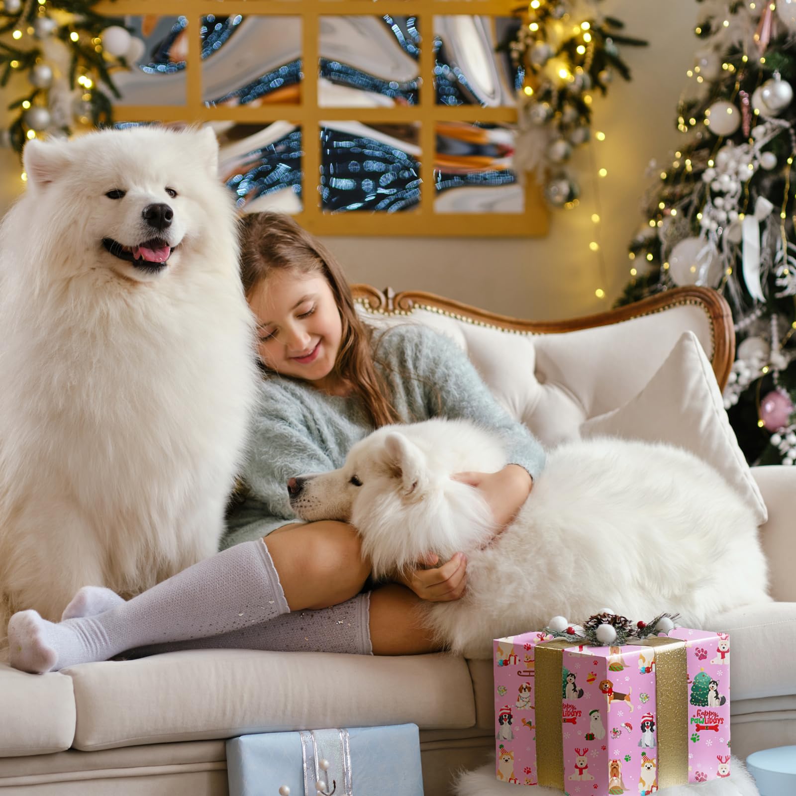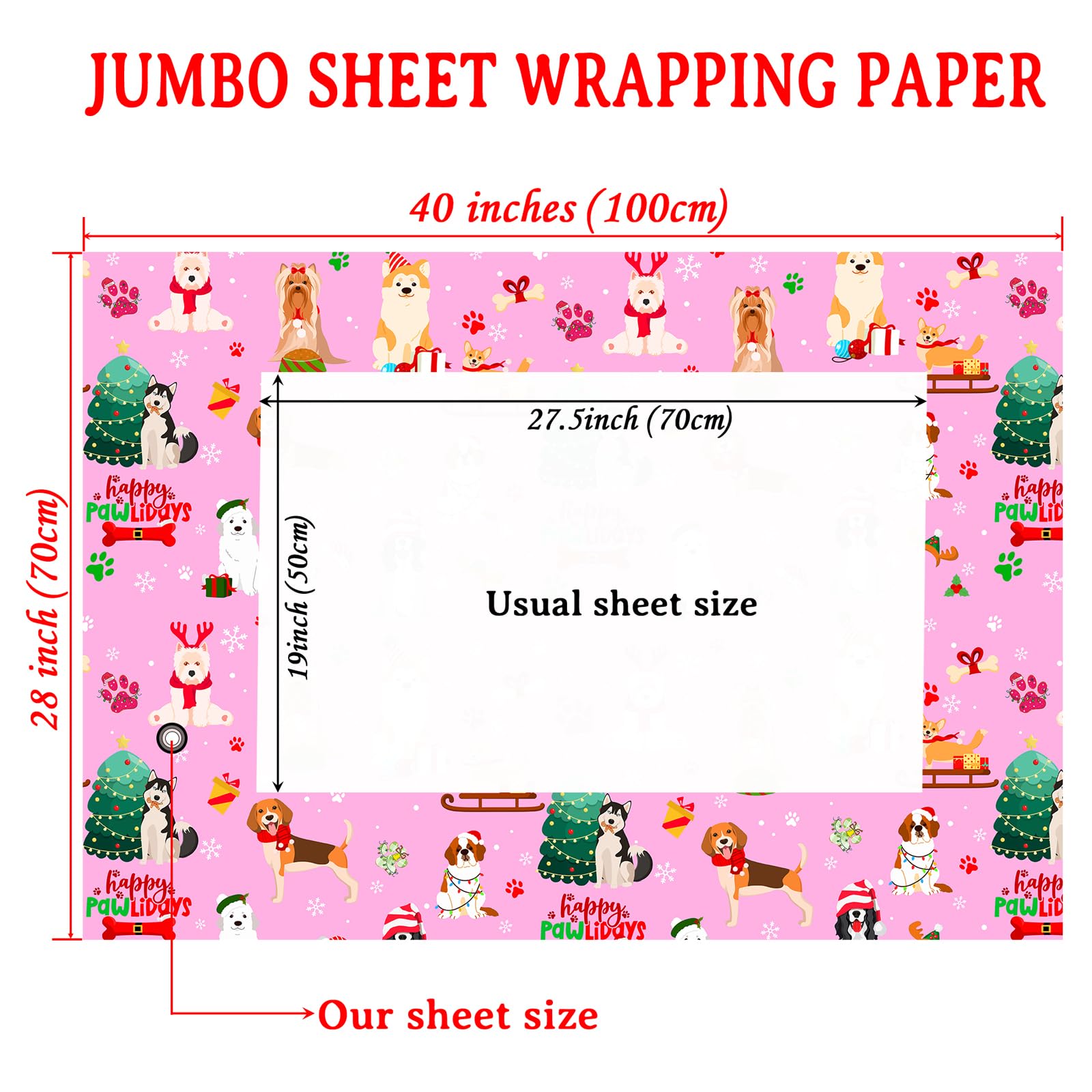 Durable Dog - Themed Festive Wrapping Paper:This set of Christmas wrapping paper is made of high-quality paper with a smooth surface. Glossy coating, clear printing, thick and sturdy design to prevent tearing.