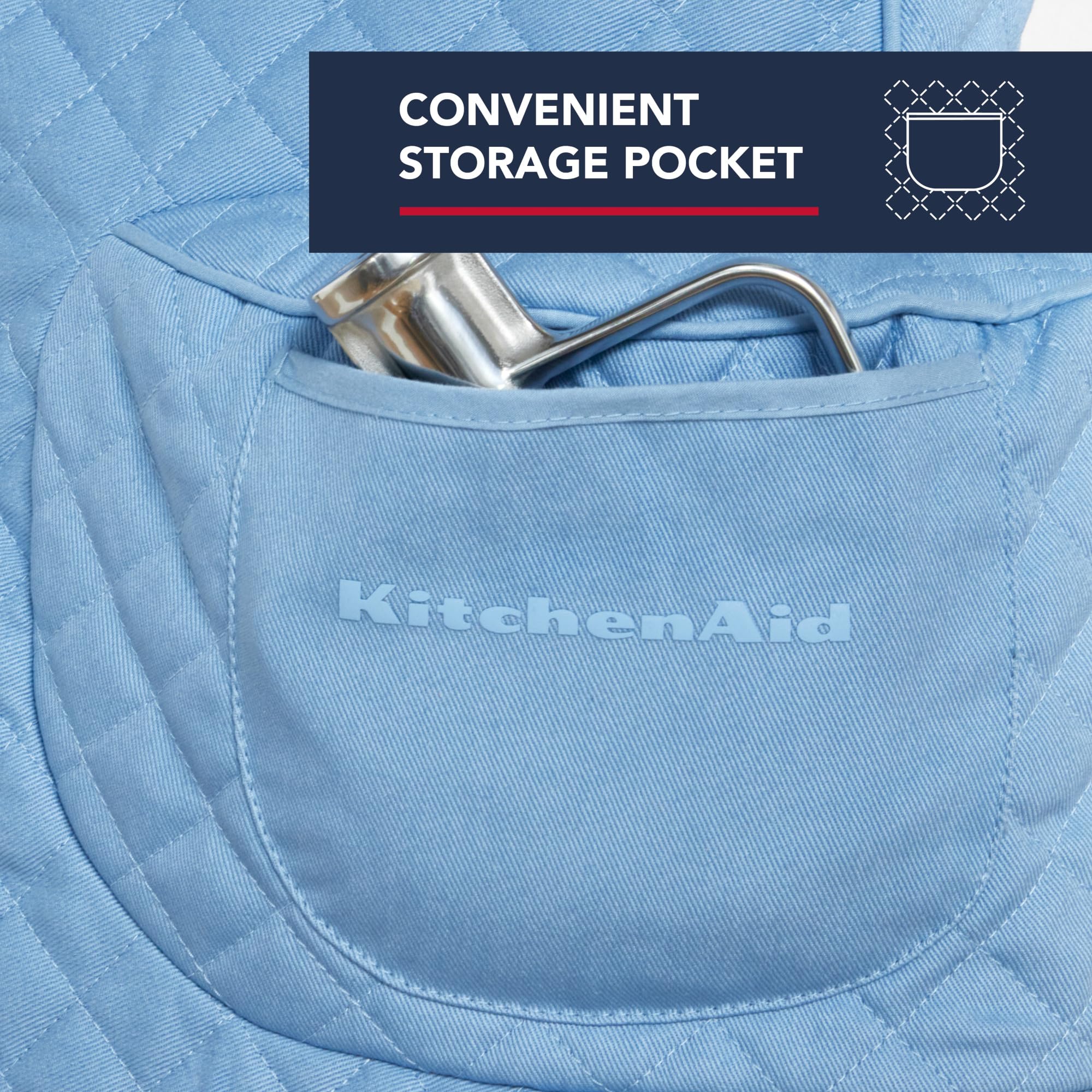 Protect and store your KitchenAid Tilt-Head Stand Mixer neatly and in style with the KitchenAid Fitted Tilt-Head Stand Mixer Cover. Made of 100% Cotton, this heavy-duty, quilted mixer cover is designed to protect your KitchenAid Stand Mixer from scratches, damage, and dust while it’s not in use. It features a convenient front pocket that's perfect for storing Stand Mixer attachments and your favorite recipe cards. This mixer cover is compatible with all KitchenAid Tilt-Head Stand Mixers using a standard 3 to 5qt stainless steel bowl. It’s also machine washable for easy care.