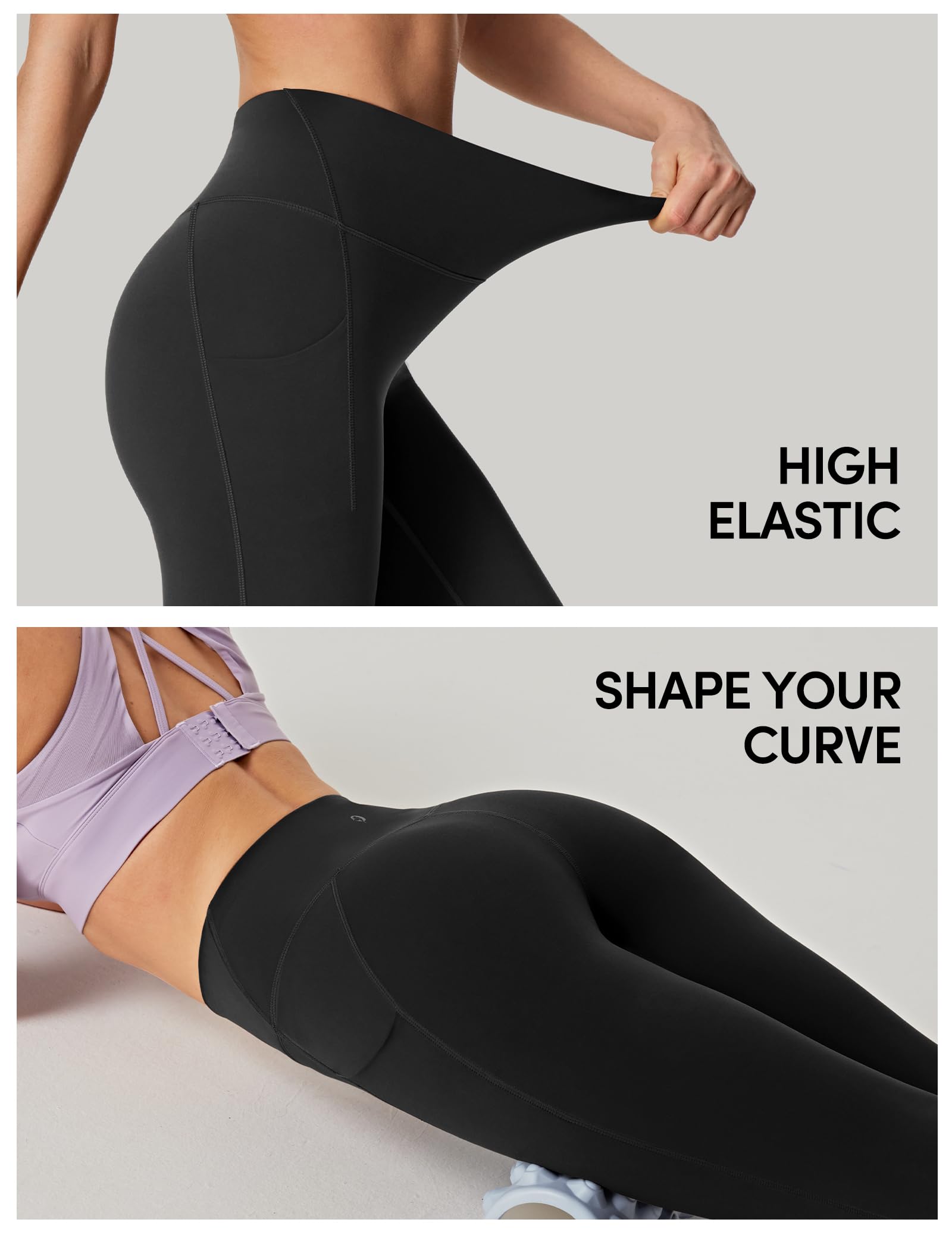 Sculpting Silhouette: Designed with contoured back seams to lift and accentuate your curves, our yoga pants offer a sculpted fit that combines butt-lifting support with leg compression for a flattering appearance. They hug every curve securely and feature pockets for seamless movement in any activity.