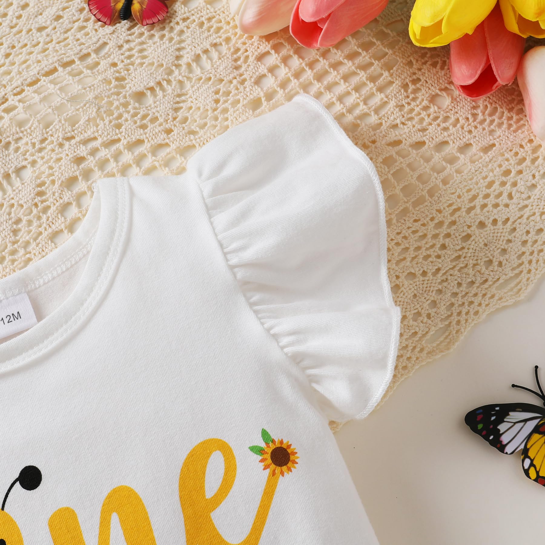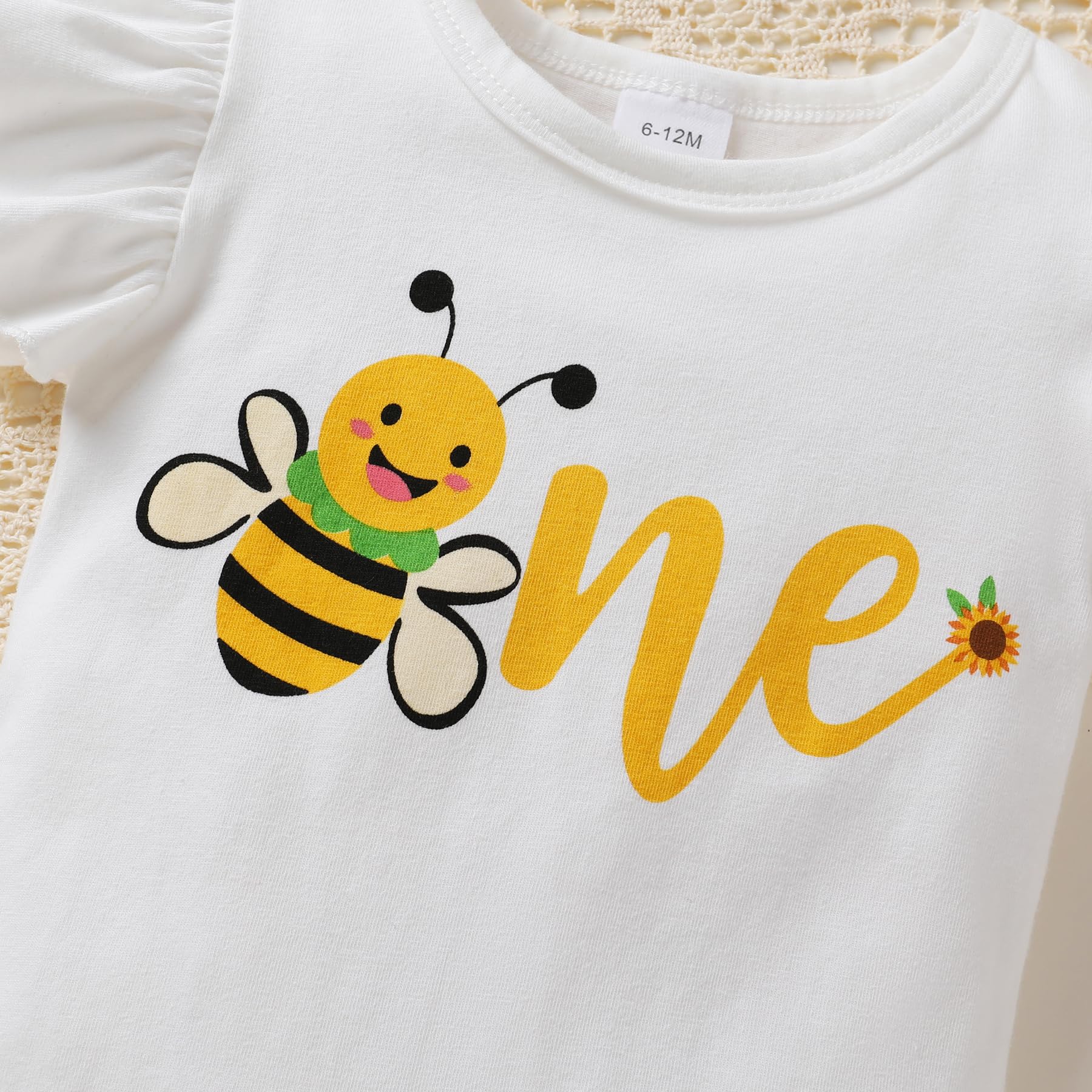 🐝Cute baby girl one 1st birthday outfit set, bee/sunflowe/cow clothes. Great birthday gifts for baby.
