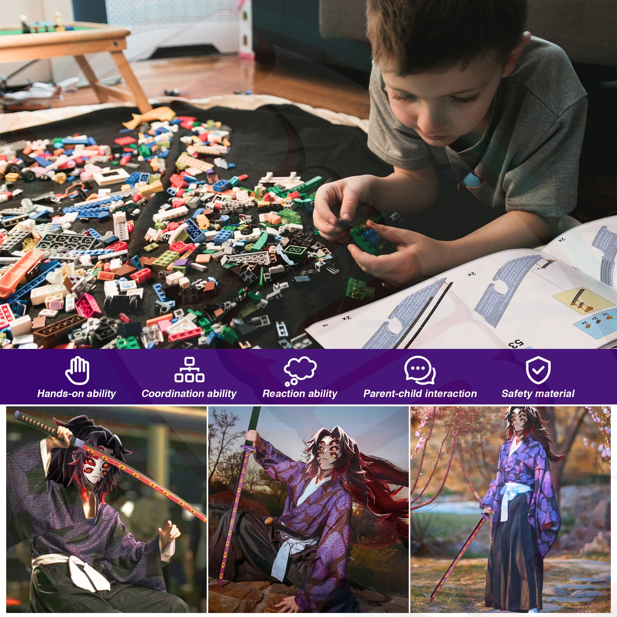 STEM Projects for Kids: The Kokushibo sword is compatible with major brands, this building block set includes full-color instruction manuals, through the assembly of building blocks, it can promote children's hand-eye coordination, divergent thinking, and problem-solving ability, and stimulate their creativity and imagination.