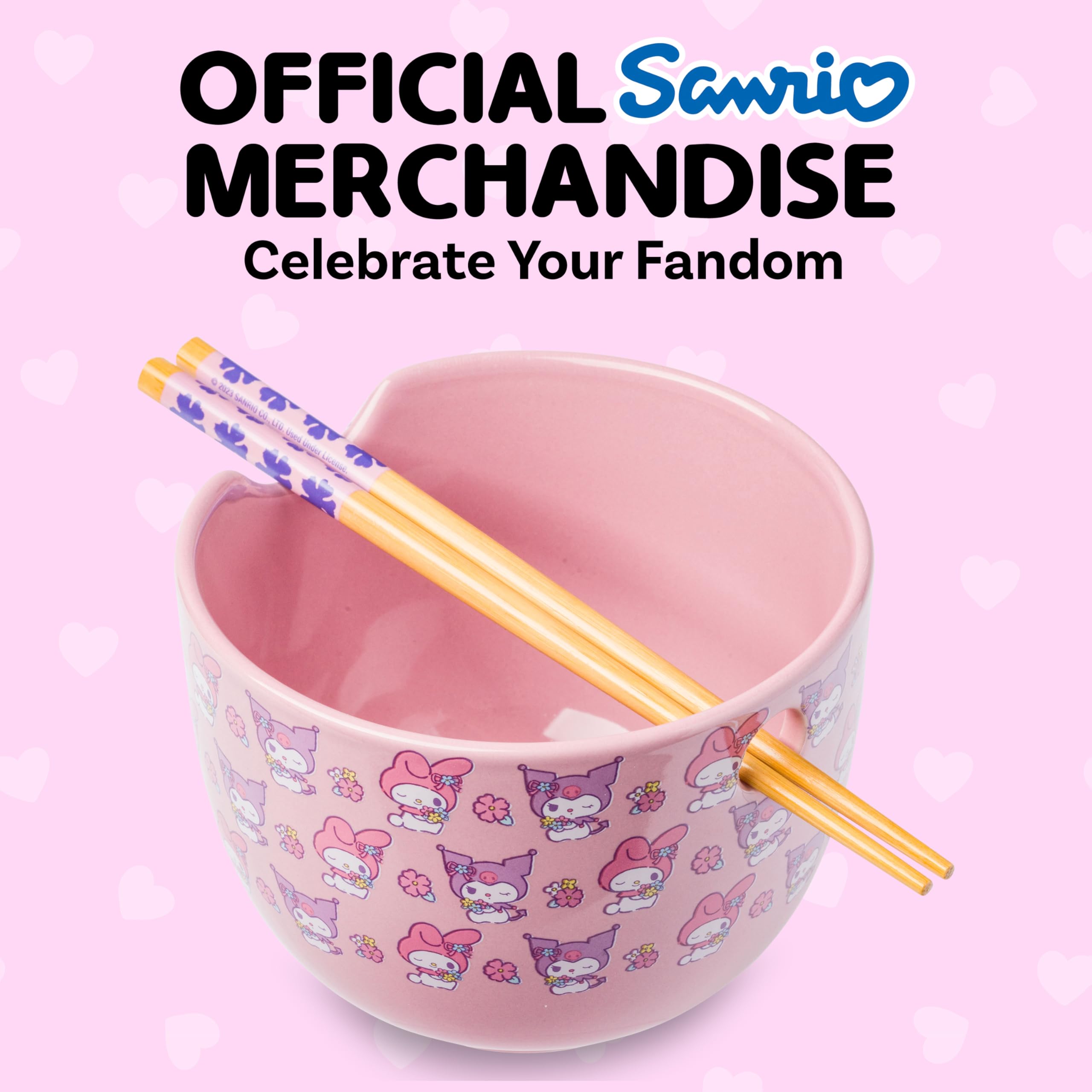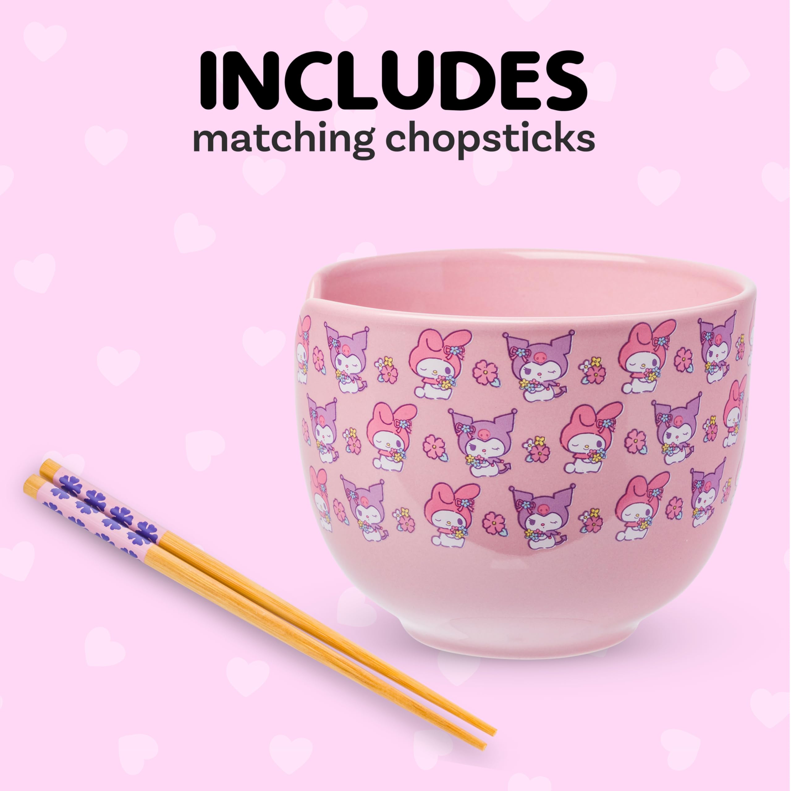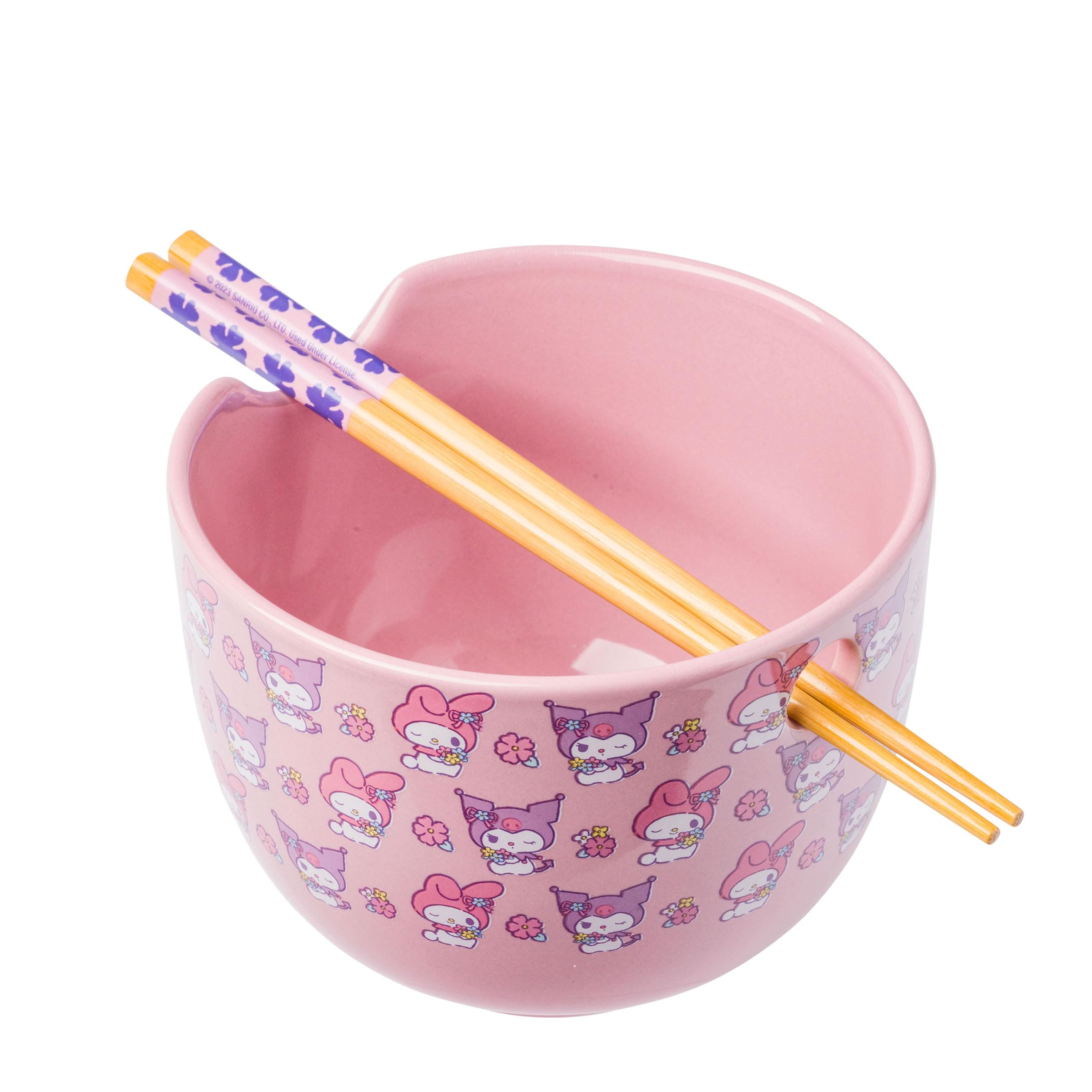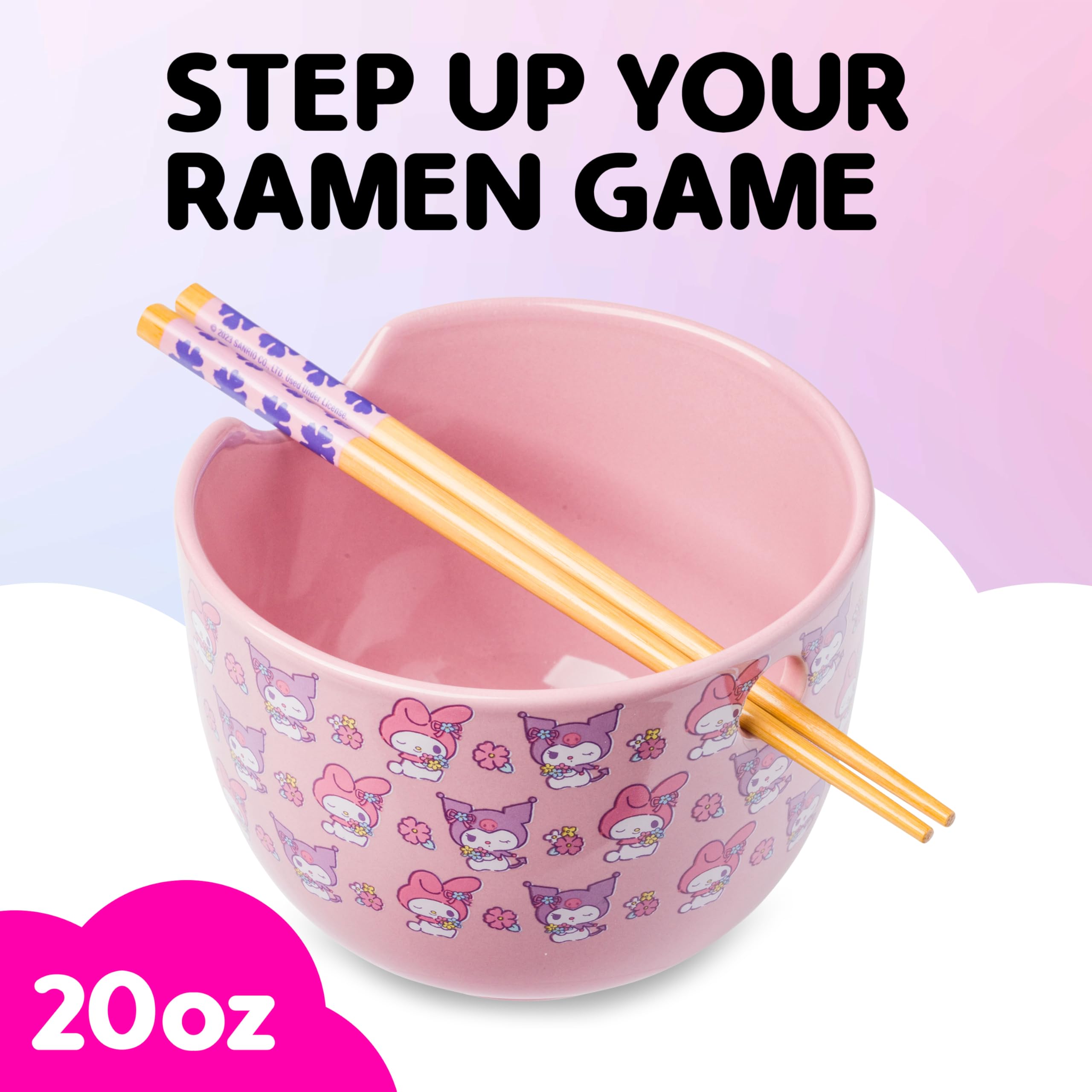 RAMEN BOWL: Step up your ramen game with Sanrio My Melody And Kuromi Pastel Floral Pattern Ceramic Ramen Bowl with Chopsticks