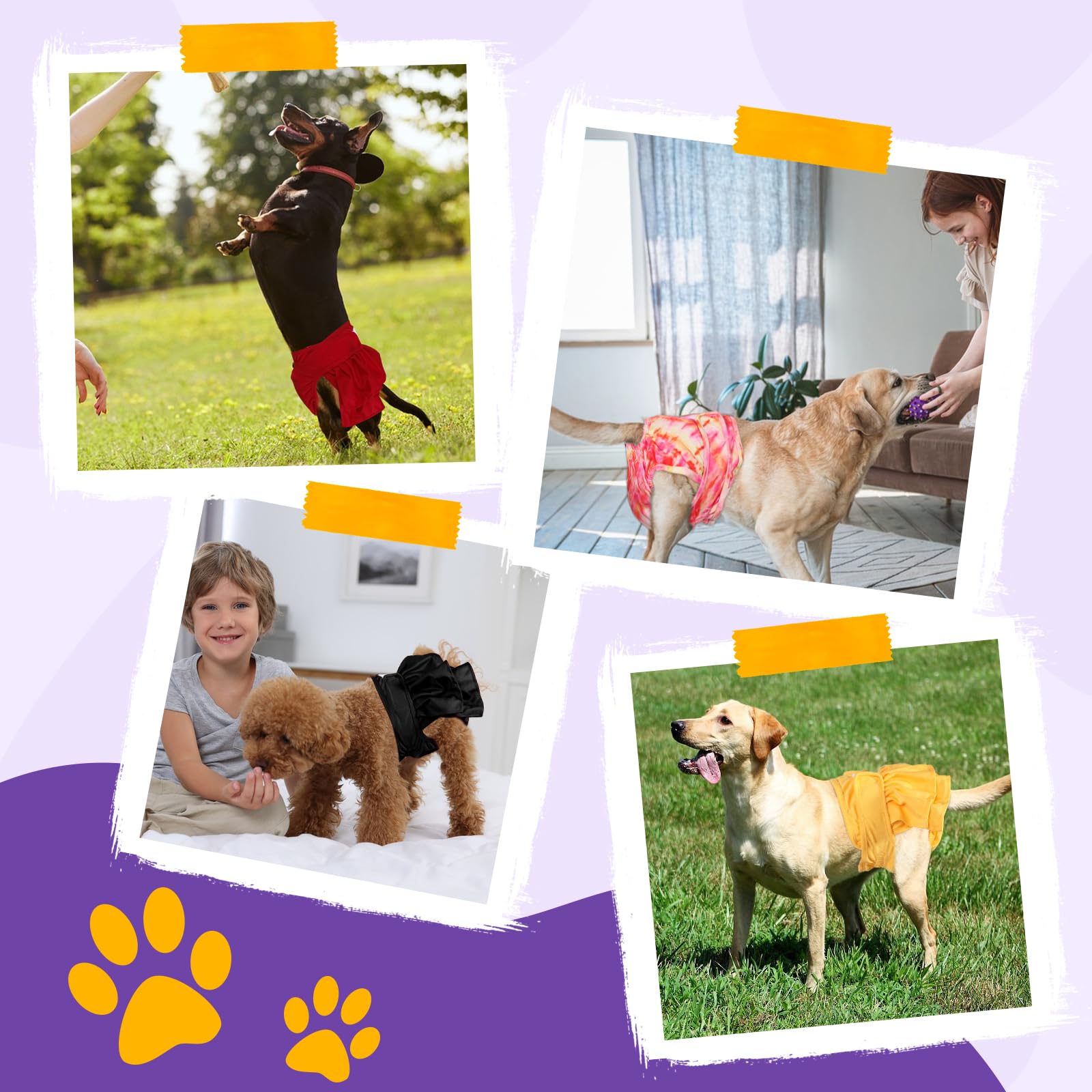 【Package Contains】6PCS female dog diapers (2 styles, 3PCS skirt style diapers, 3PCS pants style diapers), the number of dog diapers, diverse styles, can fully meet the needs of dogs. These washable dog diapers are more comfortable and stylish than disposable dog diapers