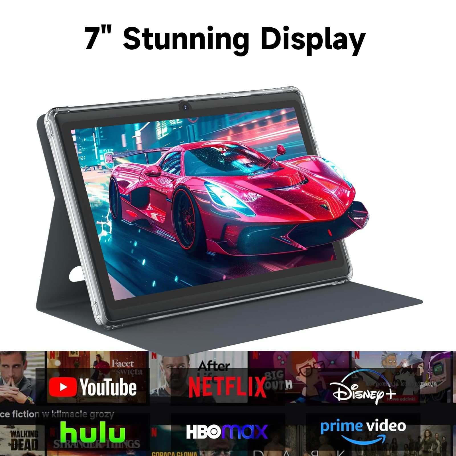 【 7 Inch IPS Display】- Equipped with a 7-inch touch screen with 1024*600 resolution, this tablet can display photos clearly and watch videos smoothly, which is enough to cope with daily needs.