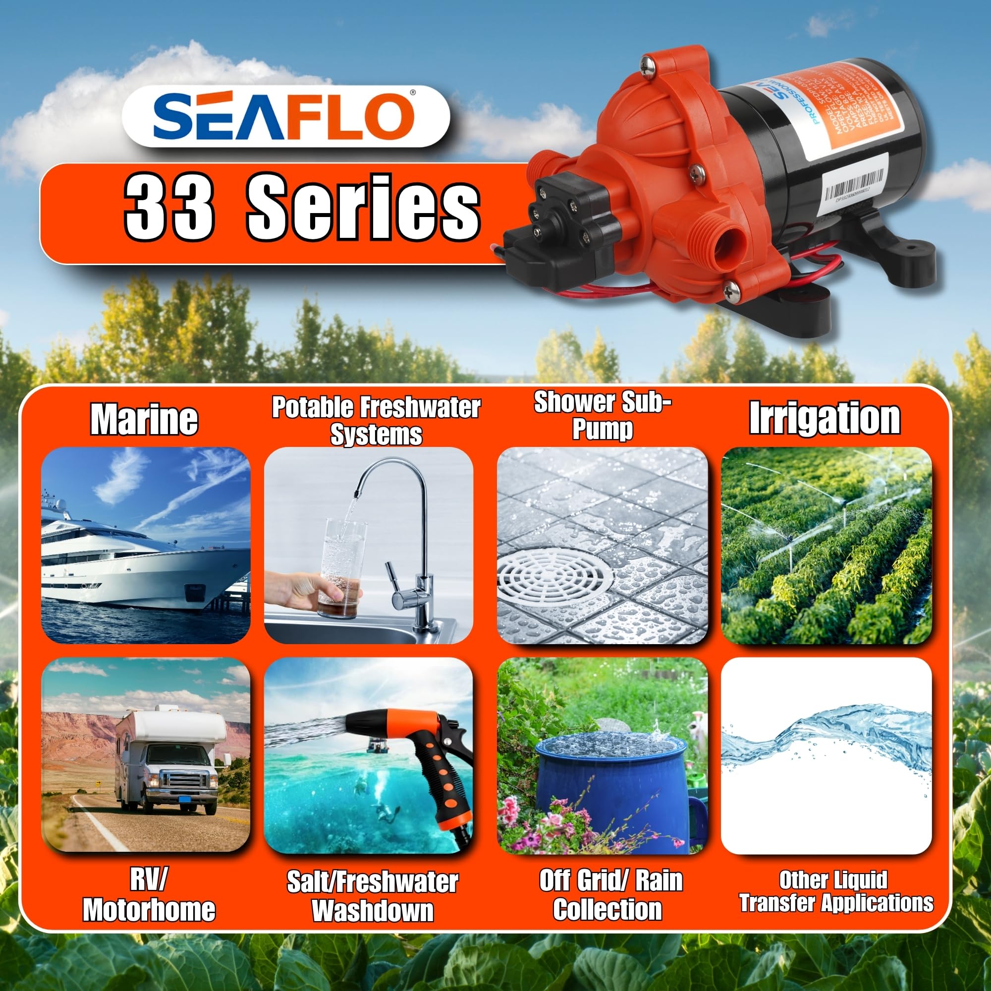 [ #1 TRUSTED OEM PUMP BRAND BY THE RV INDUSTRY ]: SEAFLO is the #1 OEM pump brand used by leading RV manufacturers across the USA. The 33 Series is trusted as factory-installed equipment for Forest River, Thor, Grand Design, Rev Group, Brinkley RV, Winnebago, and more, proving its reliability and widespread adoption in RV water systems.
