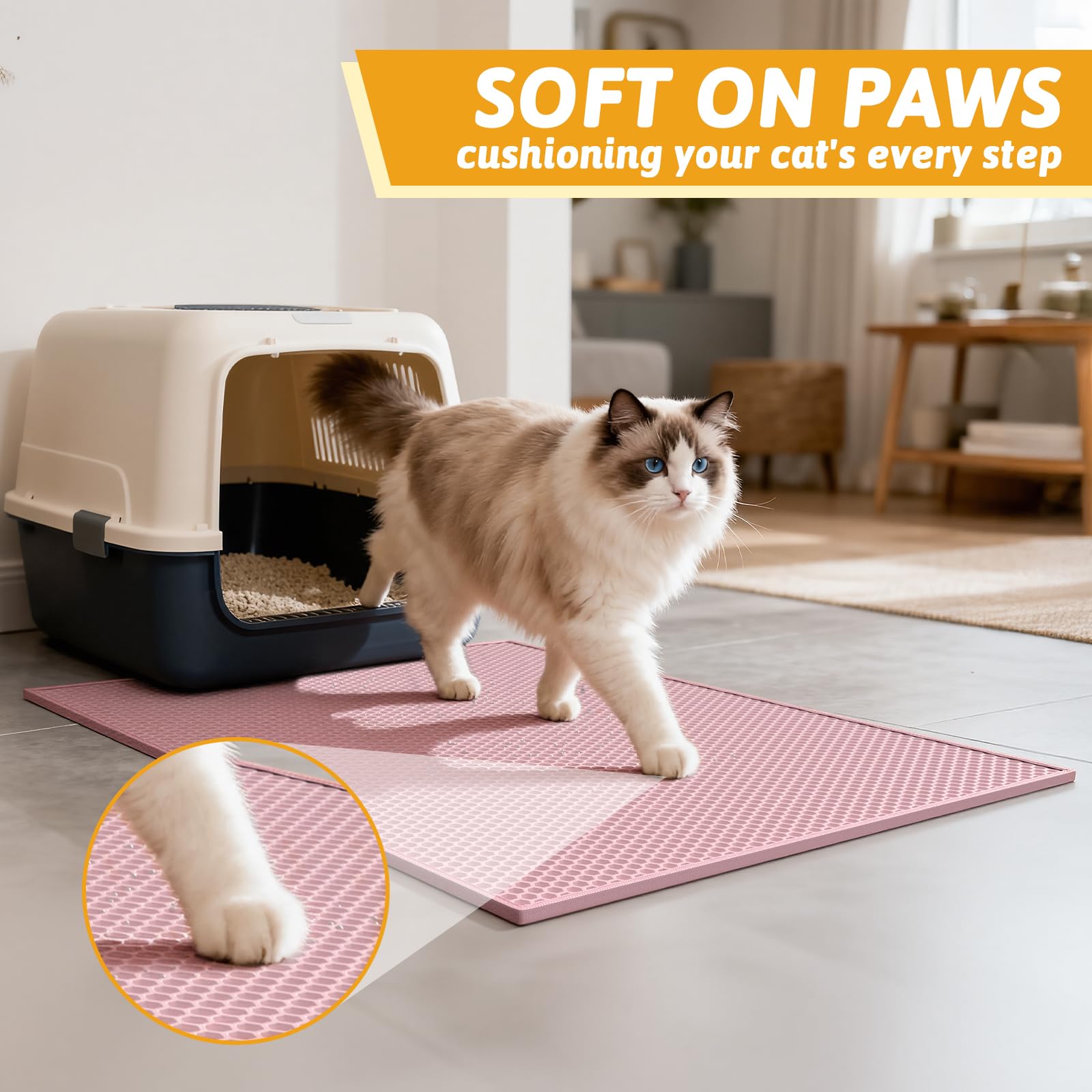 Soft On Paws & Easy To Release Litter: Great litter trapping mat, comfortable on tender paws. Our soft EVA material is gentle for sensitive cat paws. Cats even like to step on or have an afternoon snooze on it. Double layers allow litter to be sifted and gather on the bottom. Shaking gently could release litter easily.