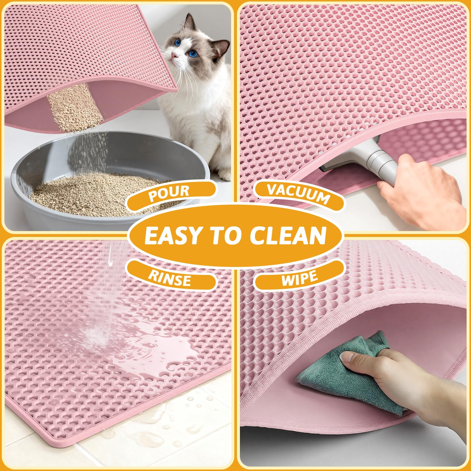 Easy Clean Washable Litter Mat: Pieviev litter box mat is made of soft and washable EVA. Dirt can be removed easily.You don't have to sweep up or vacuum the litter everyday.Save time and strength!! Plastic cat mats have to use vacuum to clean cat litter and still cannot be thoroughly cleaned.
