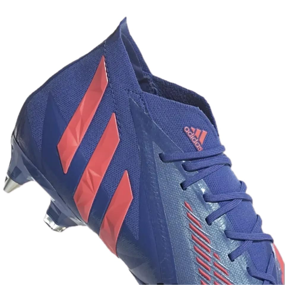 Description Command the pitch with the adidas Predator Edge.1 SG Unisex Soccer Shoes 'Sapphire Edge Pack' (H02965), designed for players who crave power, control, and precision on soft ground. These high-performance soccer cleats feature a Zone Skin upper with ribbed sections for enhanced ball grip and swerve, paired with a Power Facet in the forefoot for explosive shots. The adaptive Primeknit collar ensures a secure, sock-like fit, while the lightweight TPU outsole with screw-in studs delivers dynamic traction on wet, natural grass. With a striking blue, purple, and red Sapphire Edge Pack colorway, these unisex cleats combine bold style with elite functionality, making them perfect for game-changers looking to dominate.