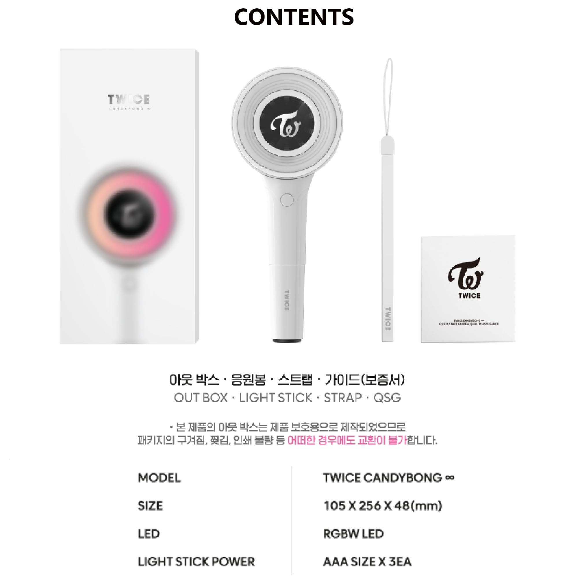 5) COMPONENTS: Out box, Light stick, Strap + Seller's Extra Photocards and Stickers Set