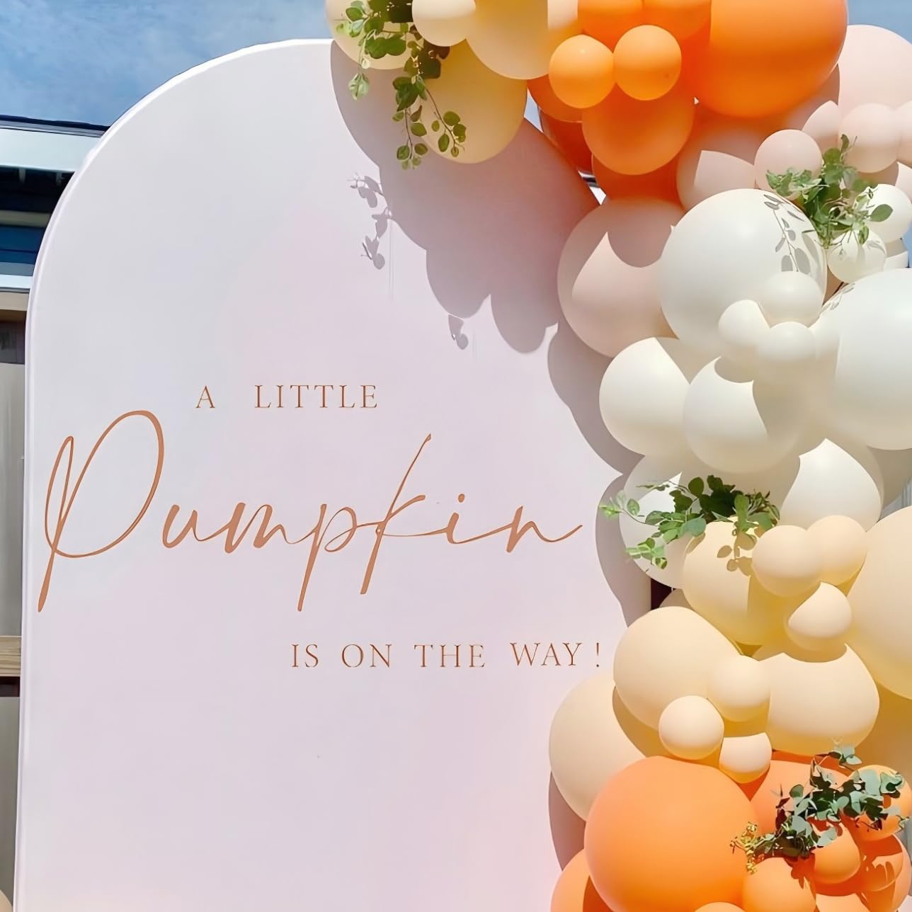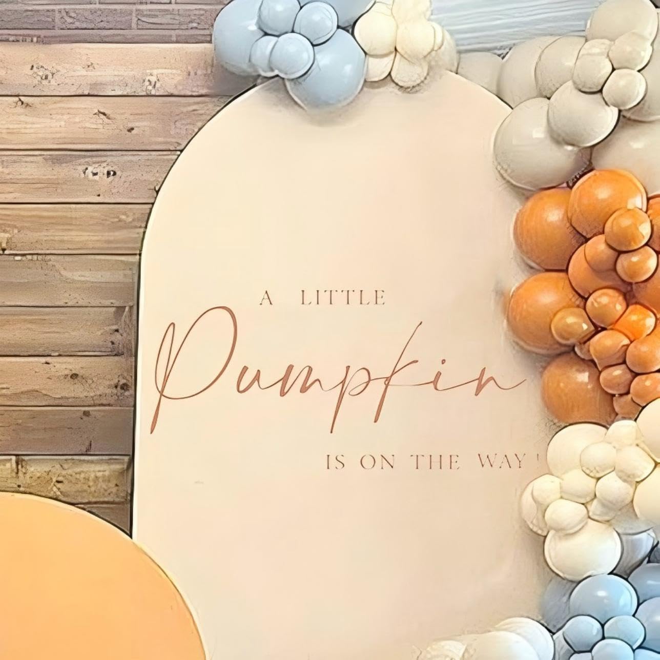 PUMPKIN-THEMED PARTY BACKGROUND DECORATIONS - Highlight your baby shower theme with this innovatively designed "A Little Pumpkin is on the Way" decal, and add a joyful atmosphere to your pumpkin gender reveal party