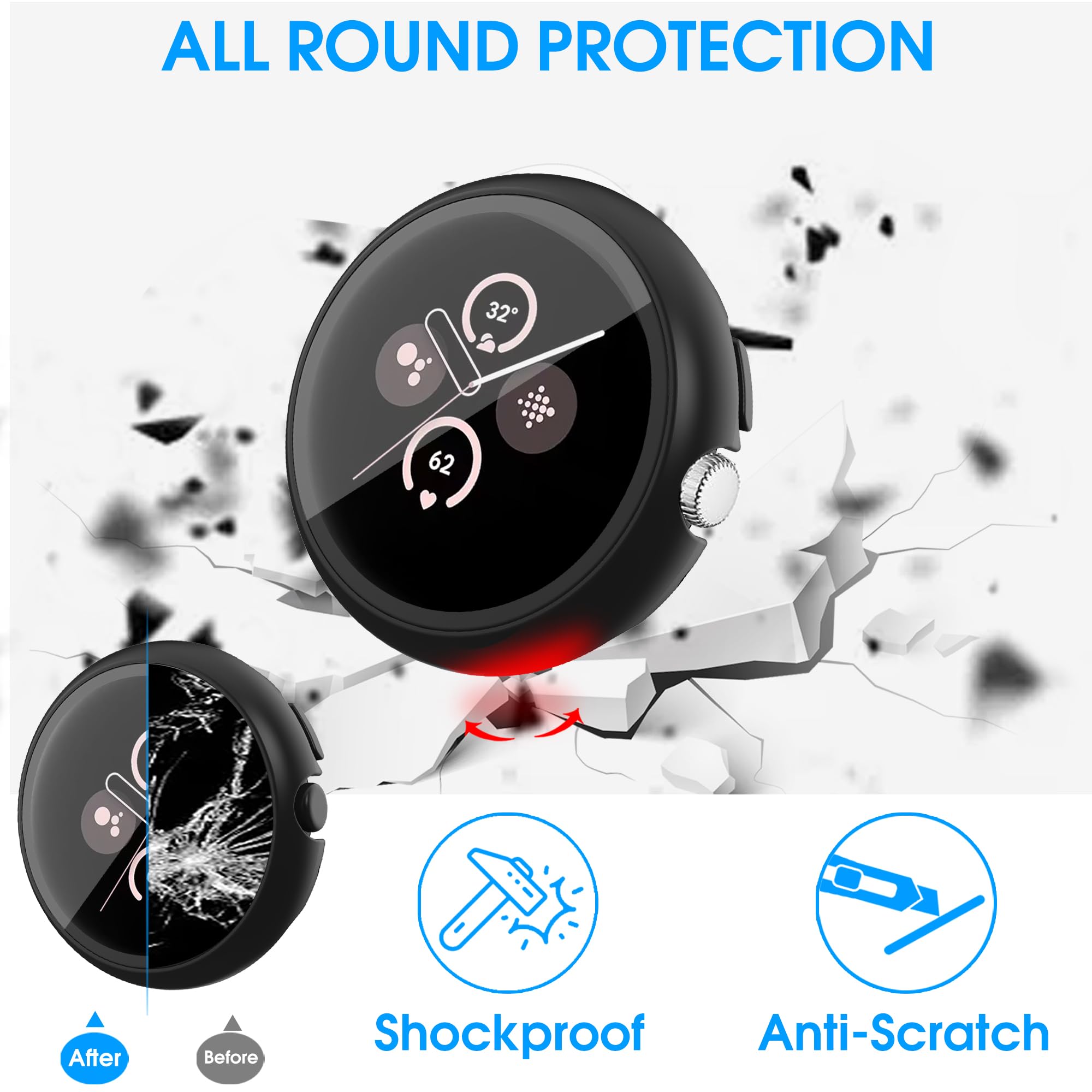 FULLY PROTECTION: The screen protector case has scratch resistant and shockproof to provide the best protection for your watch.