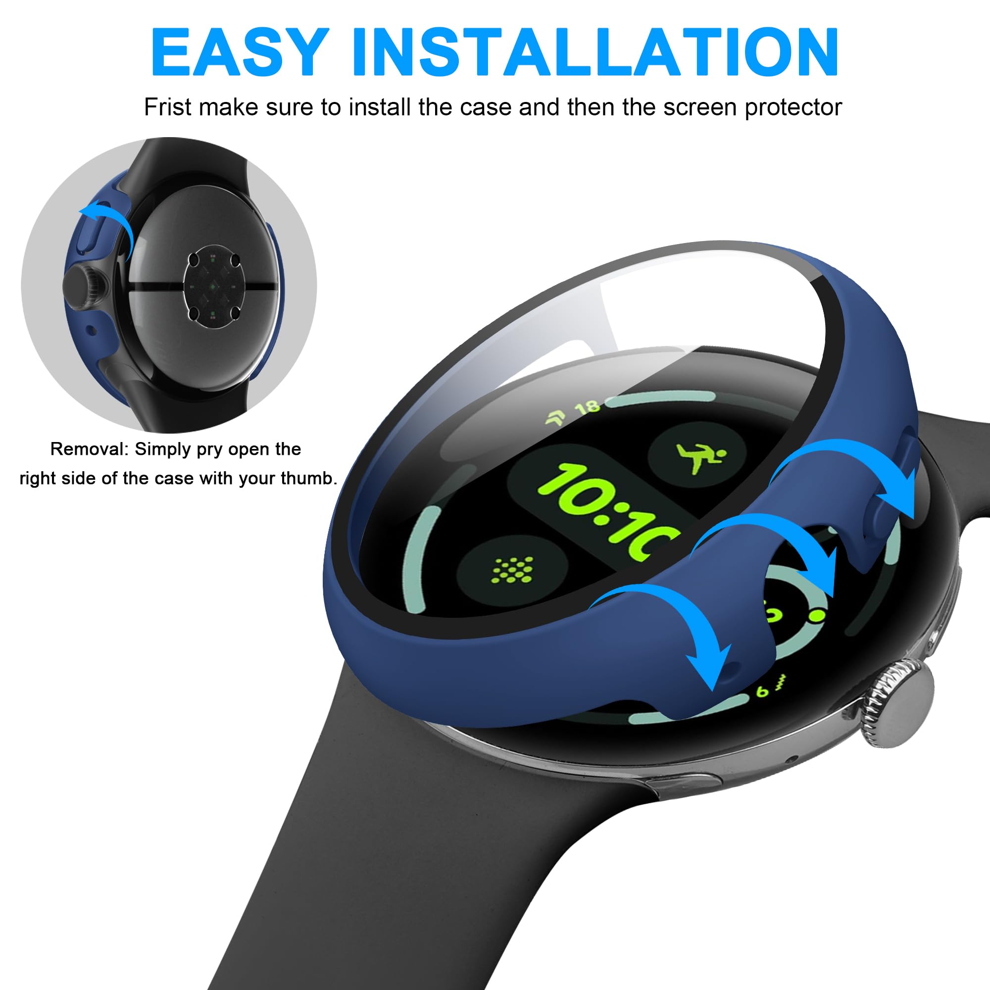 MULTIPLE COLOR: Select 10 different color watch case to personalize your style, adding beauty to your daily outfit. Installation: just peel off the screen sticker, align the watch case with the left side of the watch, then press down on the right side of the watch case. Removal: Simply pry open the right side of the case with your thumb.