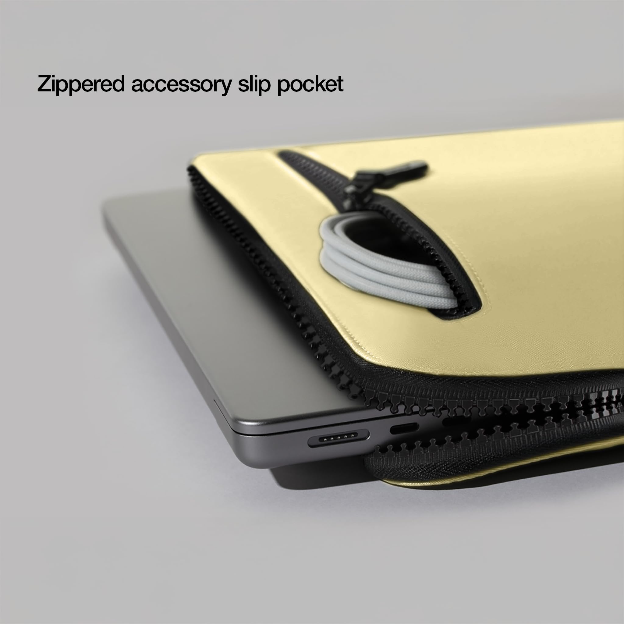 Functionality In Mind - This sleek laptop pouch not only offers a full zip closure to completely protect your MacBook but also has a discete outer compartment to store your computers accessories while on-the-go.
