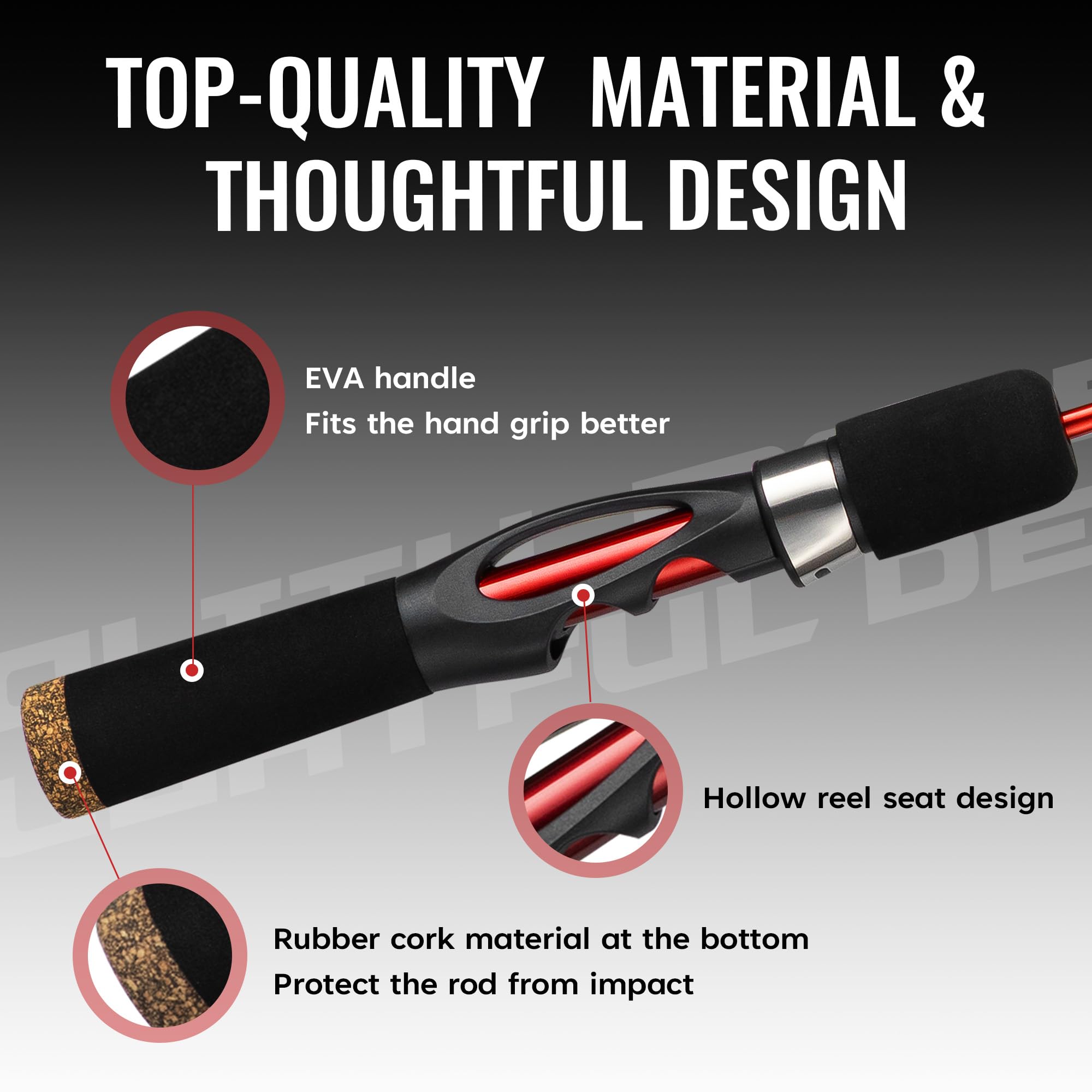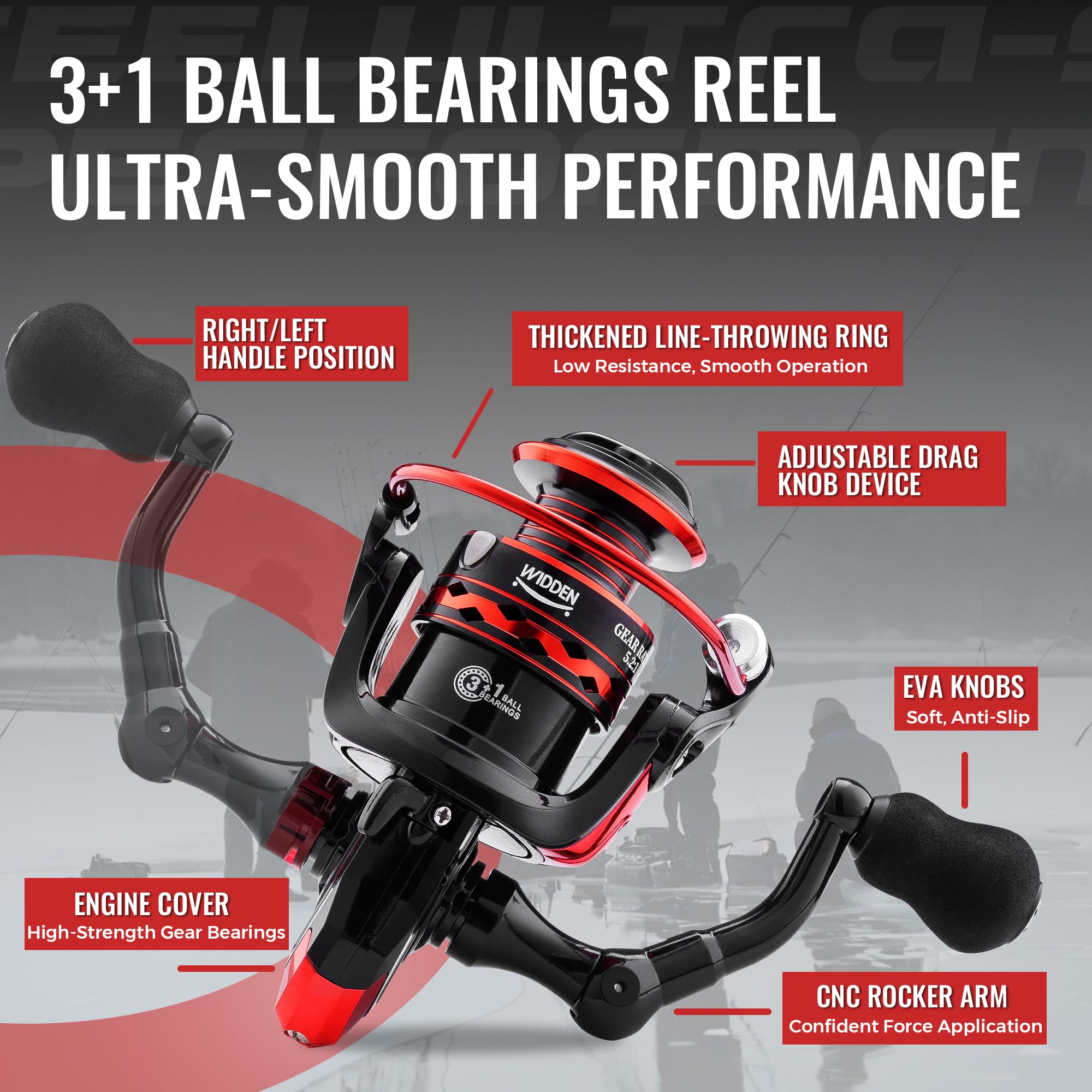 [The Rod] This ice fishing rod and reel combo adopts a hollow reel seat design, and the silver and black color combination makes it more beautiful. The EVA handle fits the hand grip better, and the rubber cork material at the bottom can protect the rod from impact. WIDDEN uses top-quality materials to increase your fishing experience and comfort