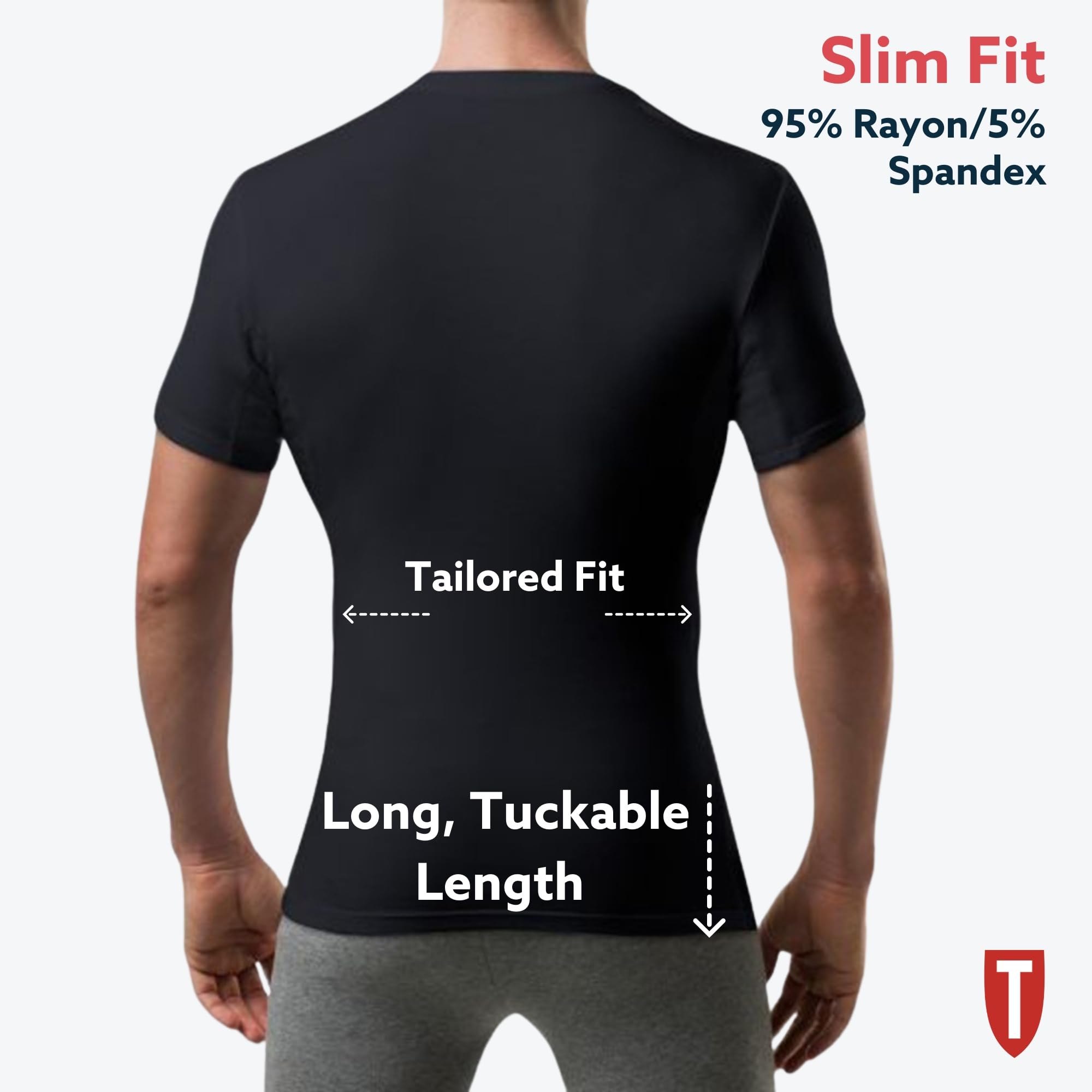 Versatile Sweat & Odor Defense T-Shirt: Our stylish men's v neck undershirt complements any outfit while discreetly keeping sweat and body odor at bay, giving you the confidence to wear any dress shirt without fear of sweat marks; these slim fit undershirts are made from 95% premium rayon and 5% spandex, exclusive of the underarm pads inner layer; tagless with a lay-flat collar for a seamless, smooth fit