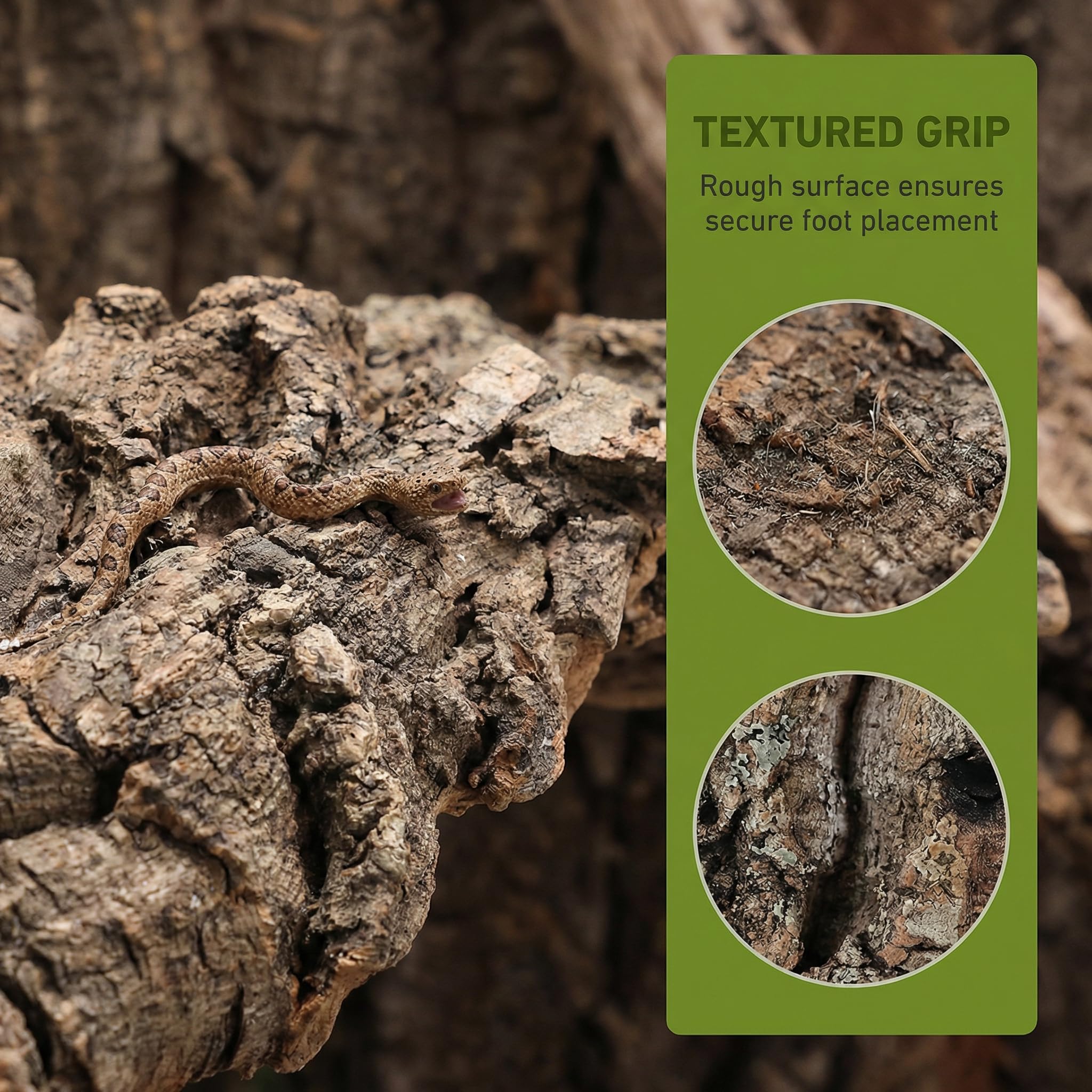 Secure Climbing Platform: This pet reptile bark climbing tree decor offers a natural and stable surface designed to support small reptiles such as snakes and lizards, enhancing their habitat with a safe climbing and resting area