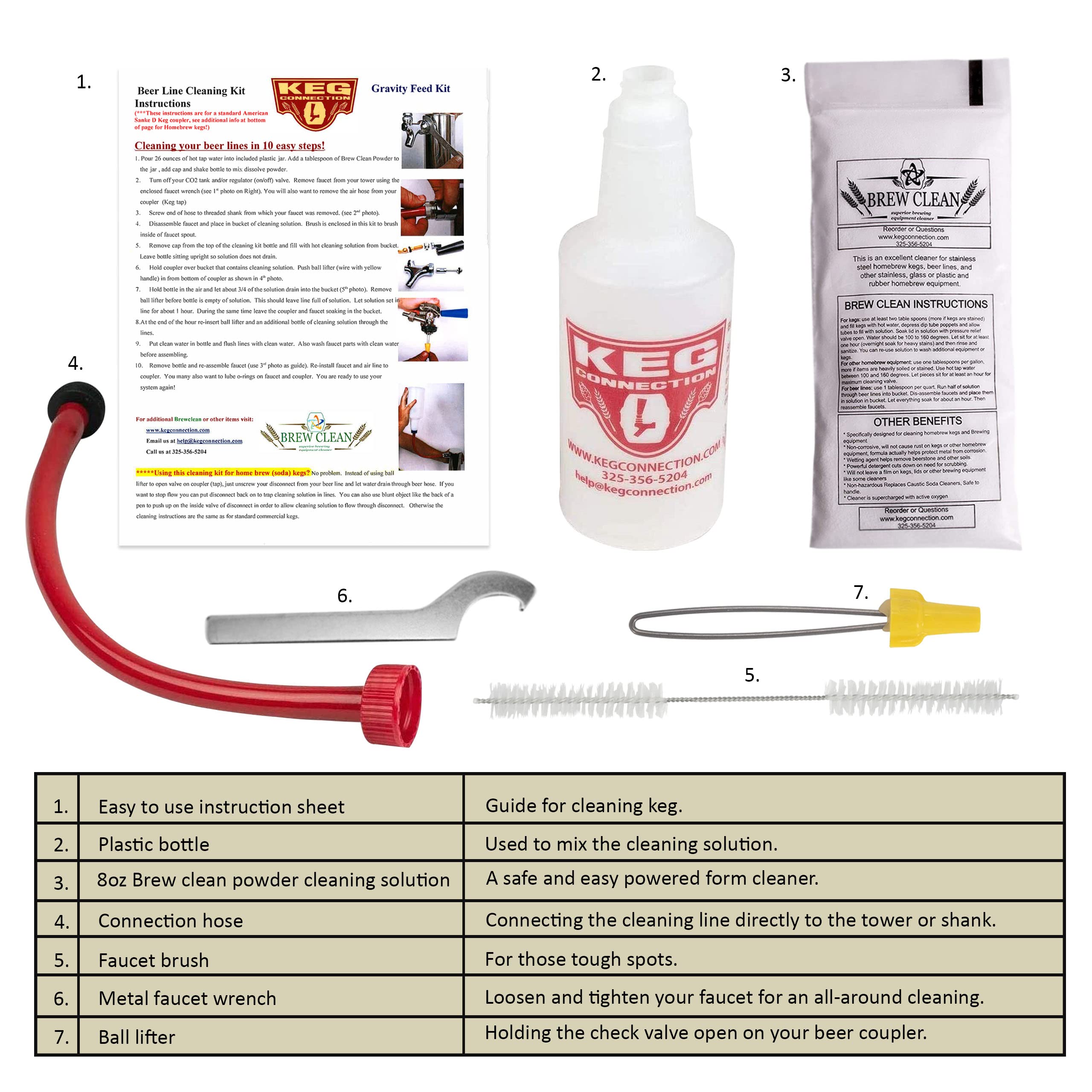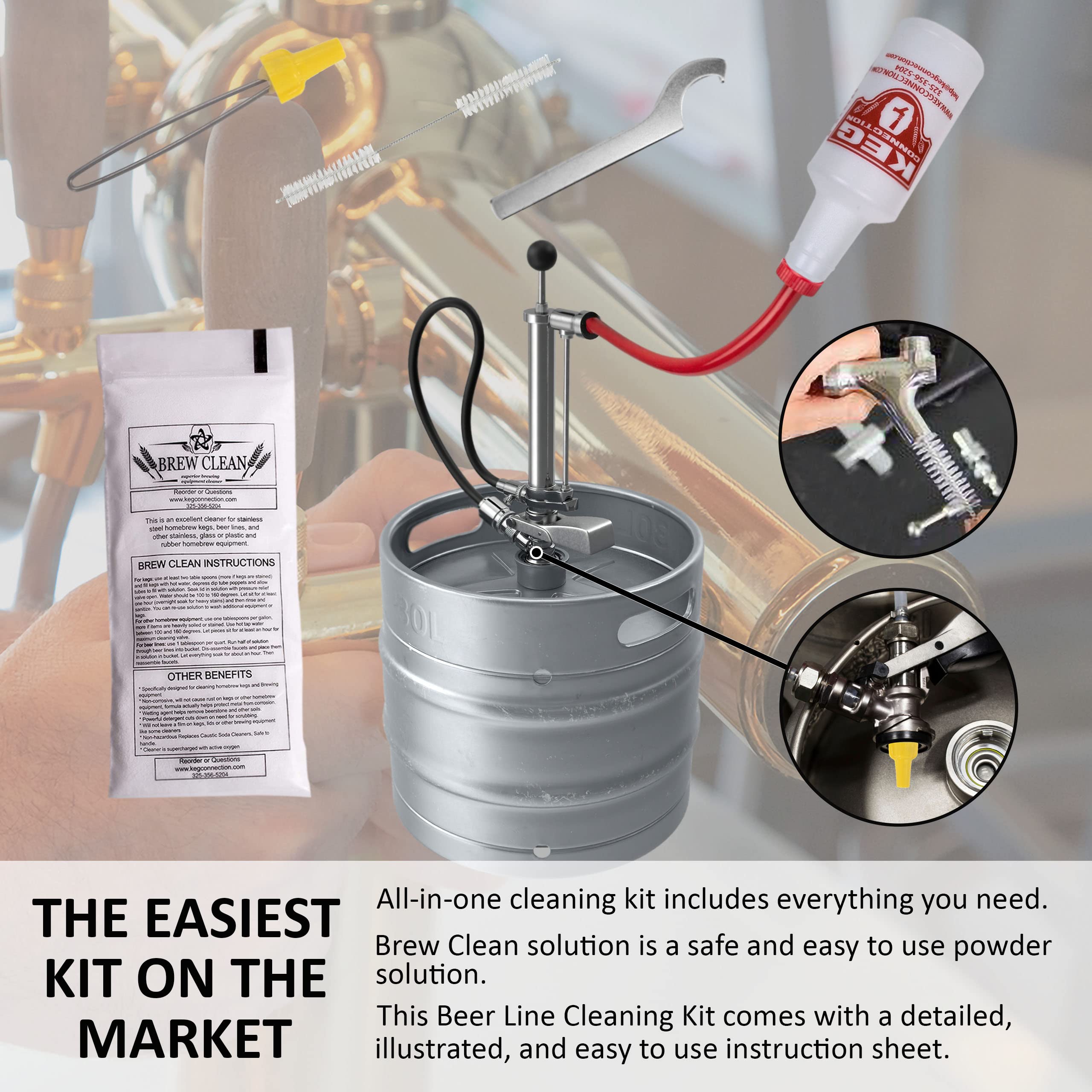 ALL IN ONE CLEANING KIT - This keg cleaning kit has everything you need to clean your taps system. This beer line cleaner set has 8 ounces of Brew Clean powder solution, a plastic bottle, a ball lifter, a CMBecker faucet adapter, metal faucet wrench and a faucet brush so you won't have to miss a tool or buy them individually!