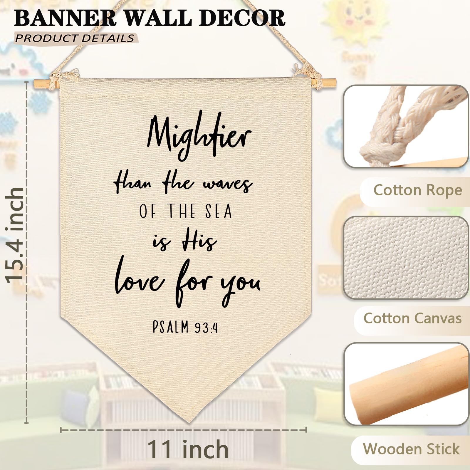 Crafted from natural cotton canvas, this 15.4 x 11 inch nursery wall banner brings a soft and calming touch to baby room, toddler space. The durable fabric keeps its shape with a natural texture, while the clear print stays bright with everyday use. Lightweight and easy to hang, it comes with a wooden dowel and pre-tied twine for quick setup on walls, doors or shelves. The versatile size fits small spaces without feeling crowded, making it perfect for creating a cozy nursery atmosphere. A thoughtful gift for baby showers, newborn arrival or first birthday.
