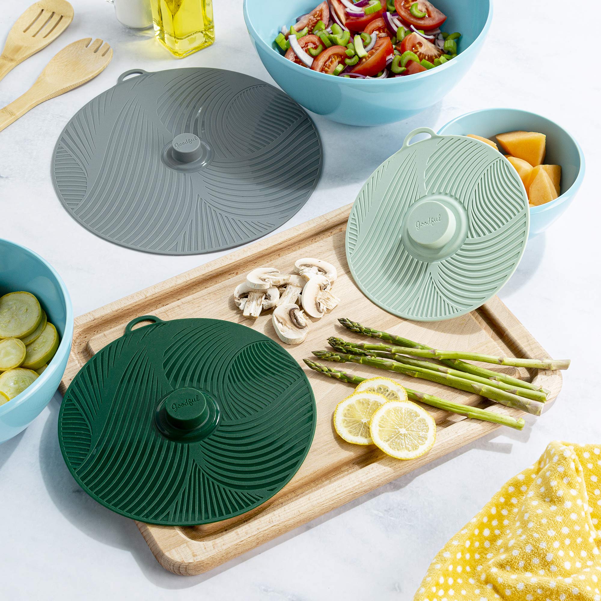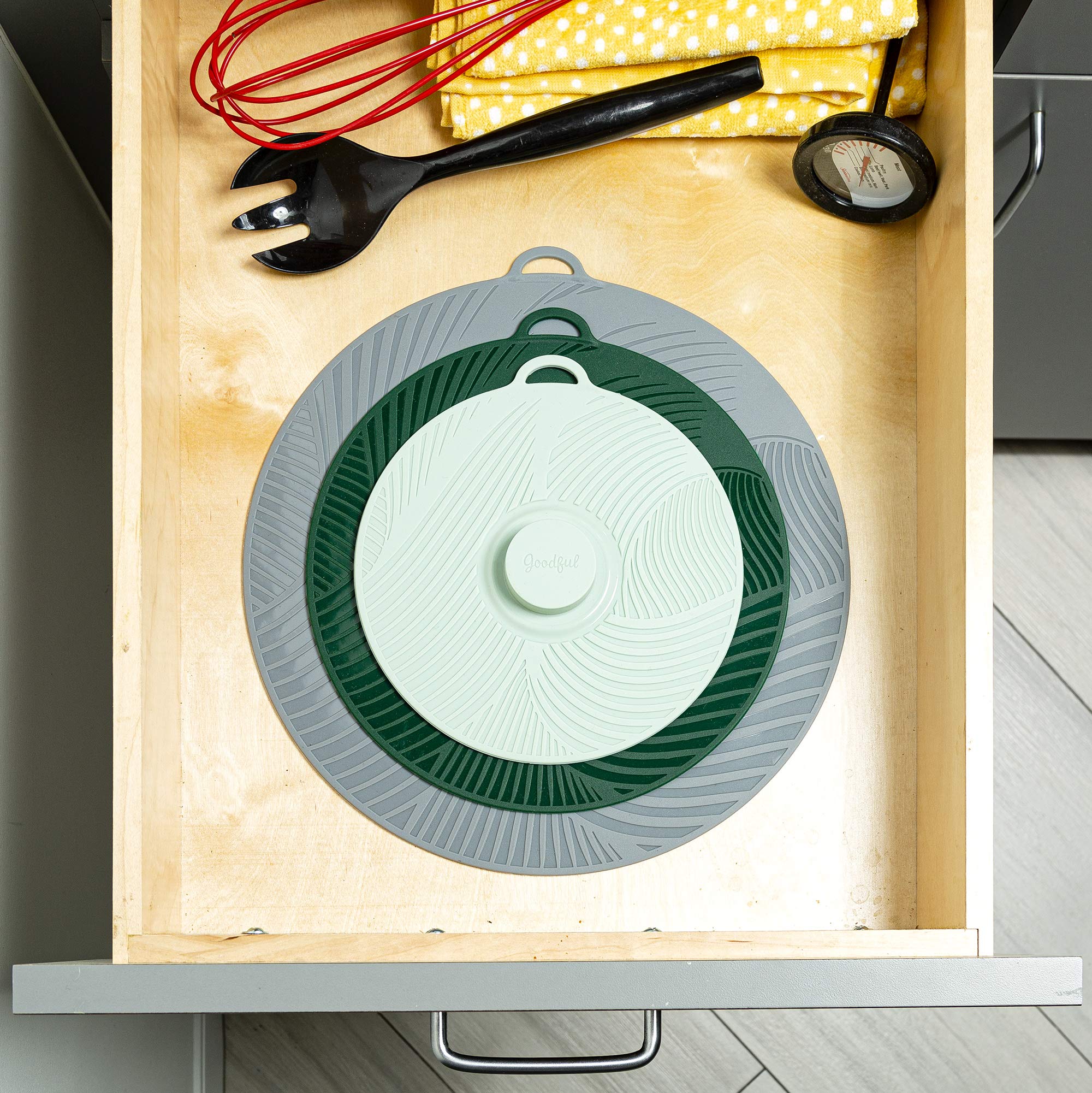 STACKABLE AND SPACE SAVING: All three sizes stack for the to save space. Replace your traditional cookware lids with Goodful stackable, universal lids for the ultimate declutter hack.