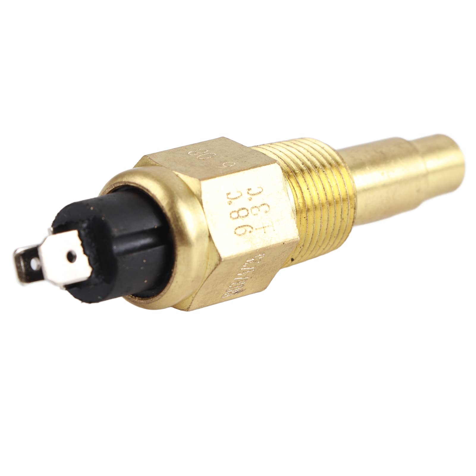 Specification: Rated Voltage:6~24V Rated Wattage :3W Thread:3/8NPT Protective Threshold:98+-3℃ Measuring Range:38~120℃ Suitable for:VDO Material:Brass+Bimetal Package List: 1*Sensor