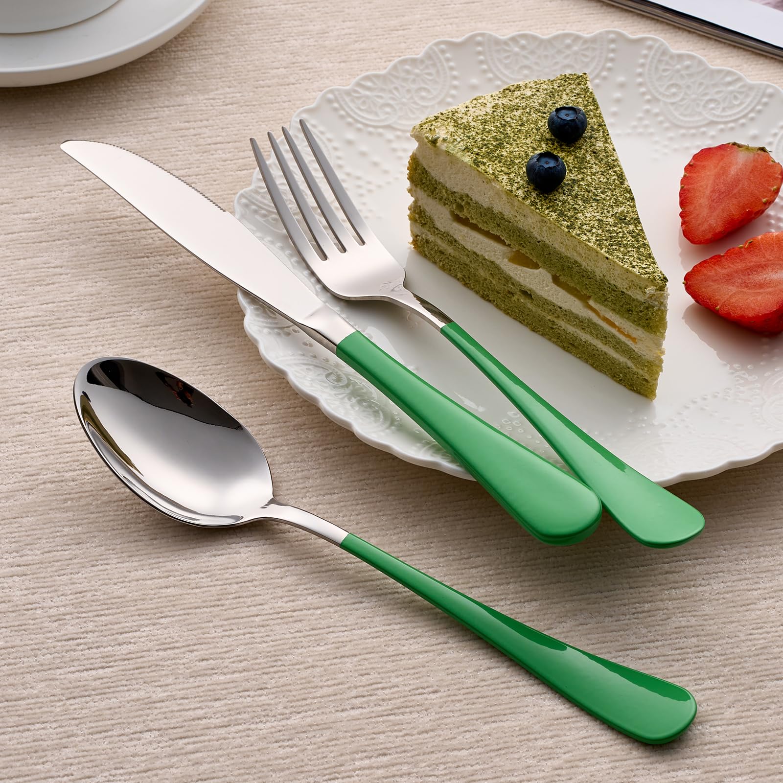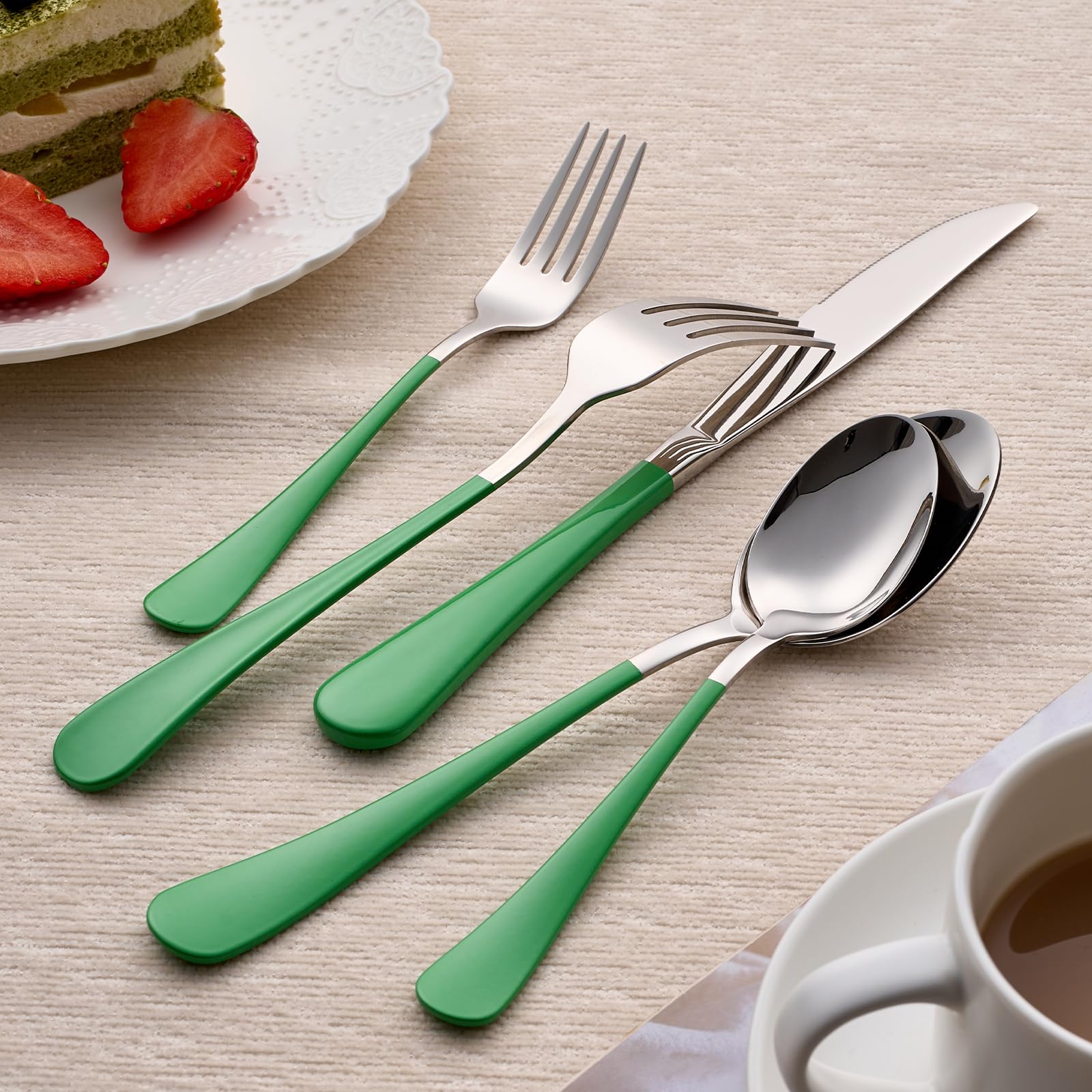 【DURABLE DESIGN】: Constructed of high-quality 18/0 stainless steel, this flatware set is rust and corrosion resistant for lasting use.