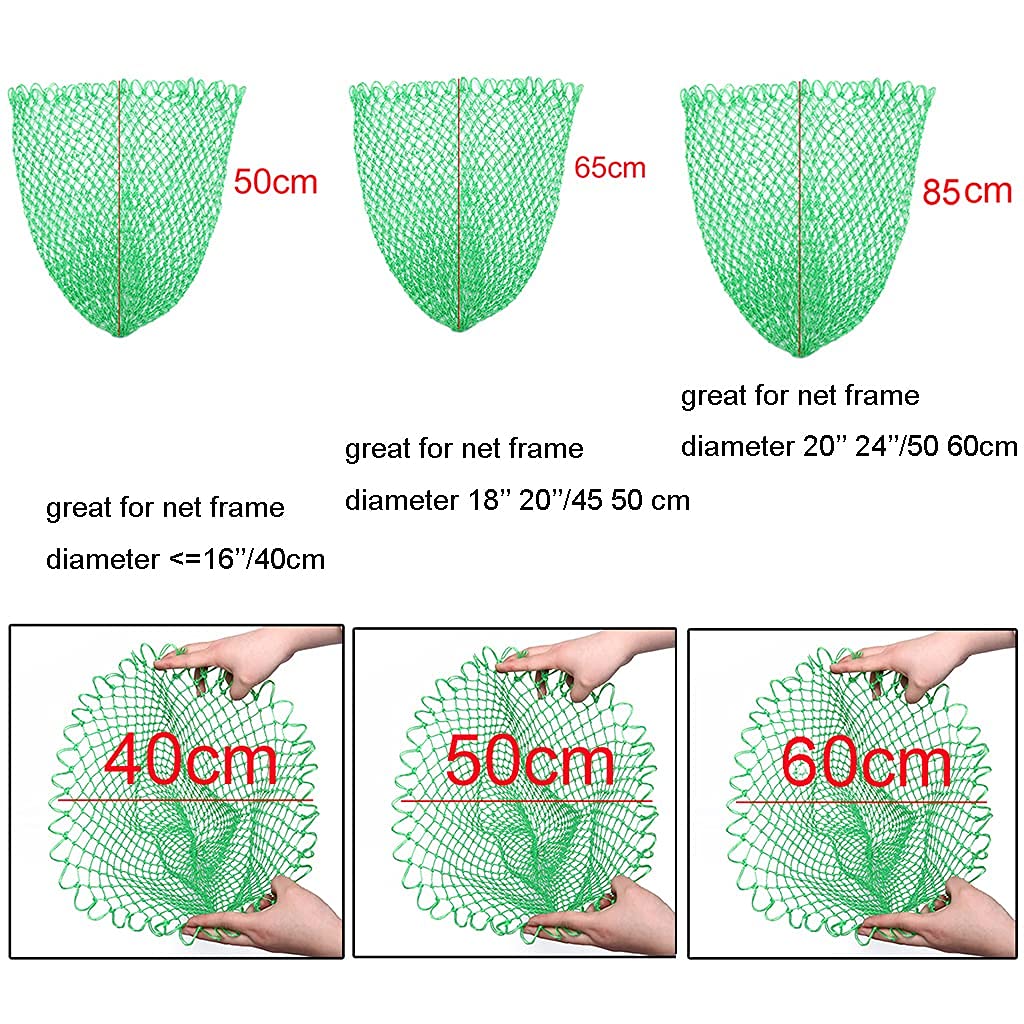 Product Size:fishing net Diameter:60 cm/23.6 inch,depth: 85 cm/33.5 inch,color:green