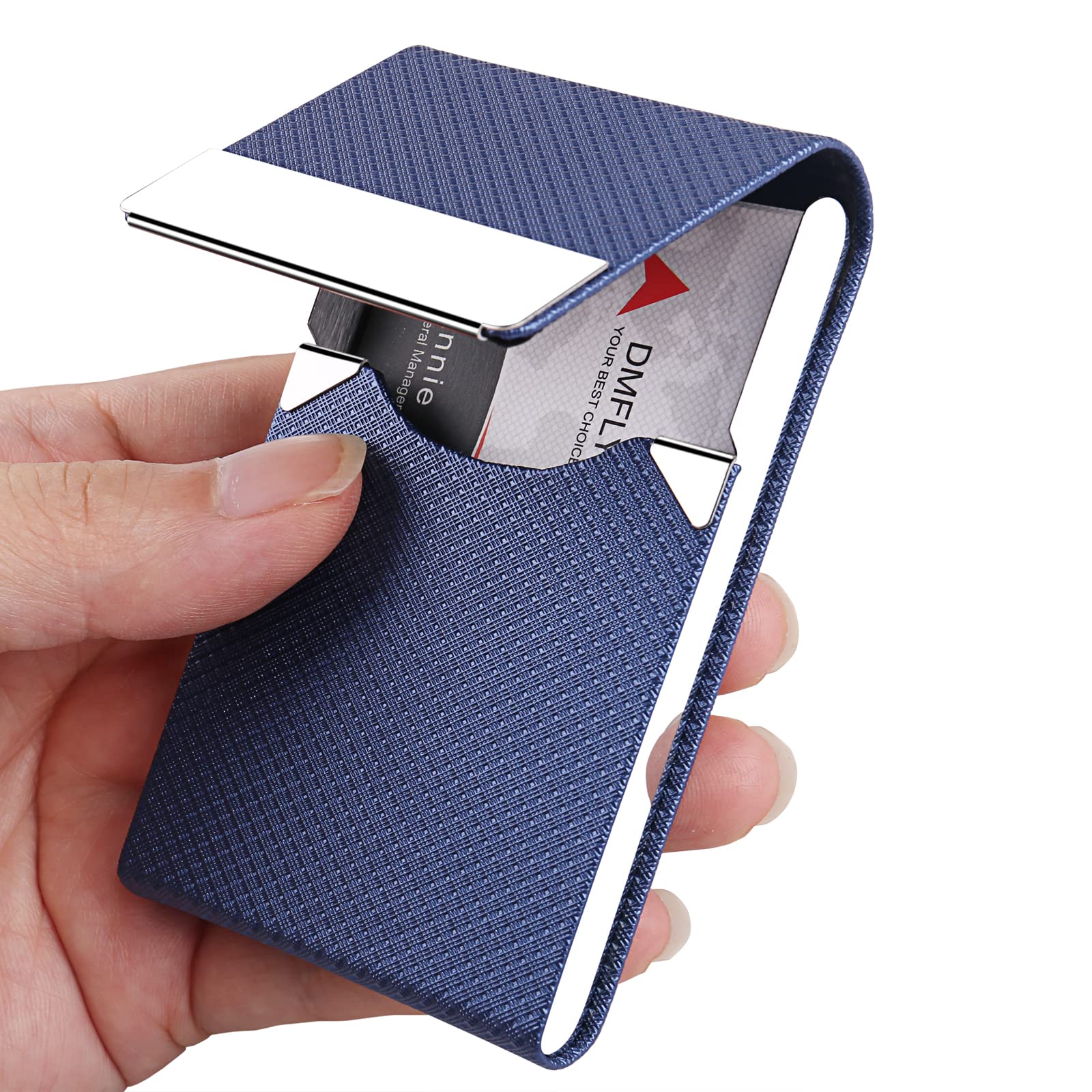 DMFLY business card holder, make your business success. > > > Fashionable and useful, our card wallet boasts an elegant design that is smooth and elegant. > > > Magnetic shut, easy to take out the business cards when you meet with a customer. Let hard to take out cards issue get away from you. > > > Pu leather + stainless steel, sturdy and use longer, due to leather covering, fingerprint issue gone, keep the card case clean. > > > Our card holder not only for business card, also for credit cards, note cards and personal cards, etc. > > > Our slim business card holder, high capacity, can holds plenty of cards, even in thick card stock- depending on your card thickness. Pocket size, easy to carry. > > > Fingerprint issue gone: Compare to pure stainless steel card case, due to our metal stainless steel card holder is leather covering, fingerprint issue is virtually eliminated. Perfect purse size and classy looking --- Highly rated from customers.