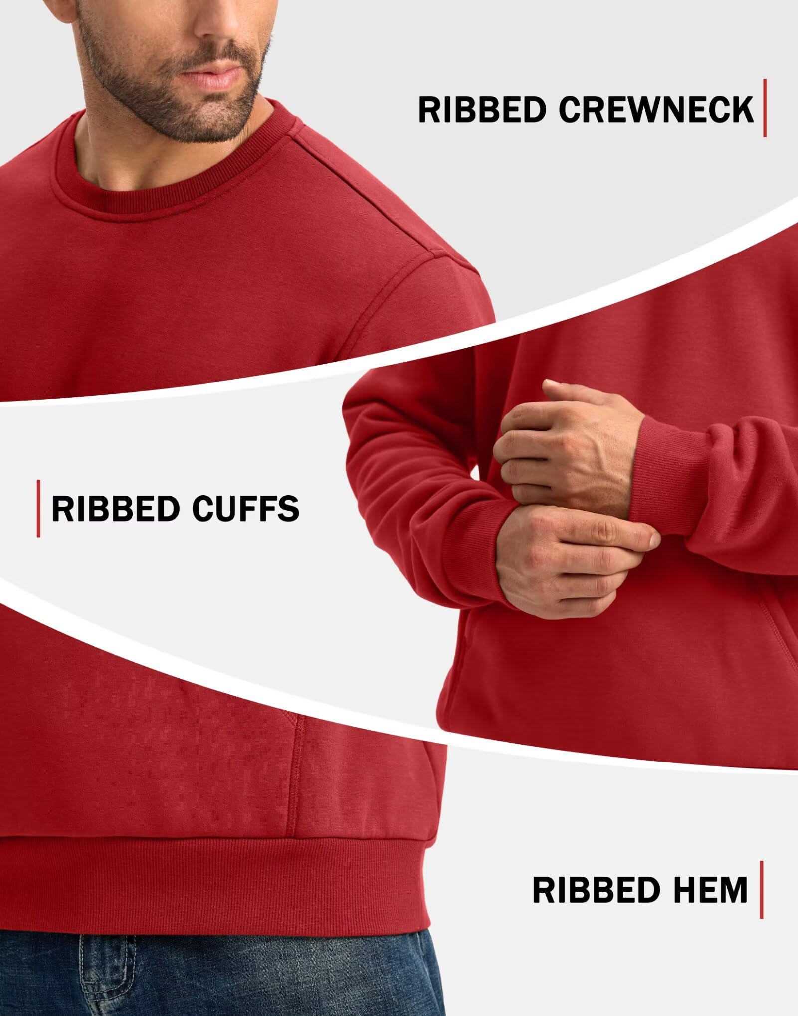 Classic Design: Crewneck-Classic ribbed crewneck solid sweatshirtsRibbing on cuffs and hem for a snug fit, elastic hem and rib cuff prevent wind entering your body.