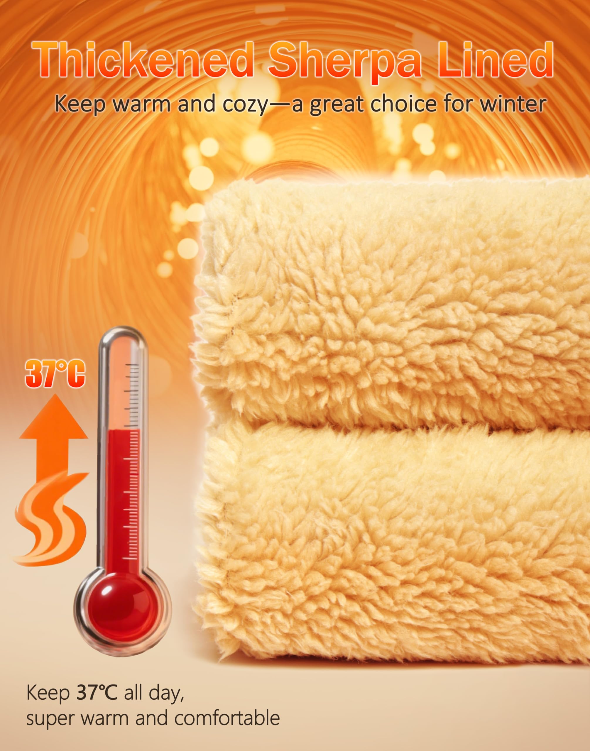Extra thick lining: Super thick super soft and warm sherpa fleece liend fabric, which not only effectively fights off the cold, but also provides long-lasting warmth to your body