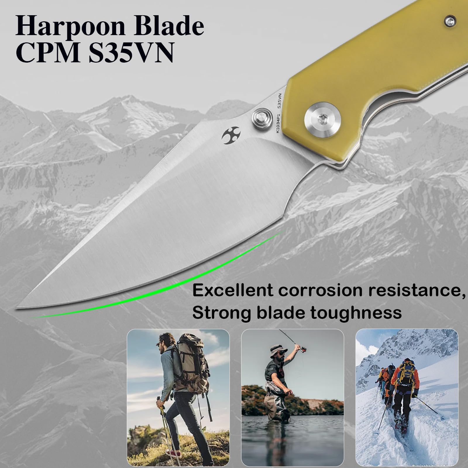 Excellent Design and Materials: Sharp Folding Pocket Knives have 3.48'' Satin CPM S35VN Harpoon blade with hardness 58-60 RC, provides excellent cutting performance and edge retention