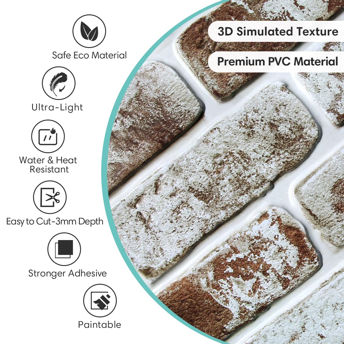 [UltraLight PVC, Flexible & Durable] 3D brick wall panels are made of premium PVC, 3mm thickness. Lightweight & Flexible: Very easy to install on interior walls. Be your own DIY designer