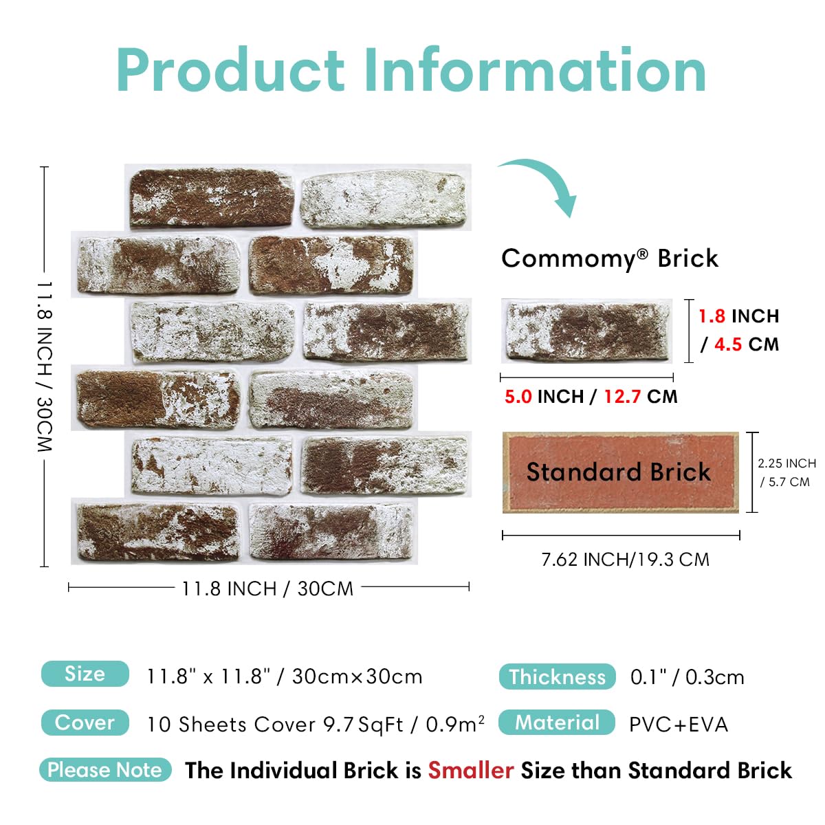 [Realistic 3D Brick Textures, But Small Size Each Brick] Commomy 3D faux brick wall panels create a farmhouse style decoration for you! Note: The individual brick is SMALLER SIZE THAN ACTUAL BRICK