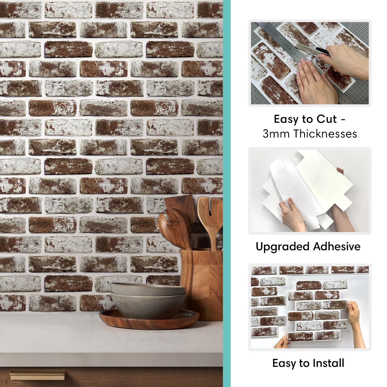 [Heat and Water Resistant, Stronger Adhesive, Sticks Firmly] Peel and stick brick backsplash are waterproof and heat-resistant. Upgraded adhesive backing ensures a strong and long-lasting bond, keeping the tiles in place!