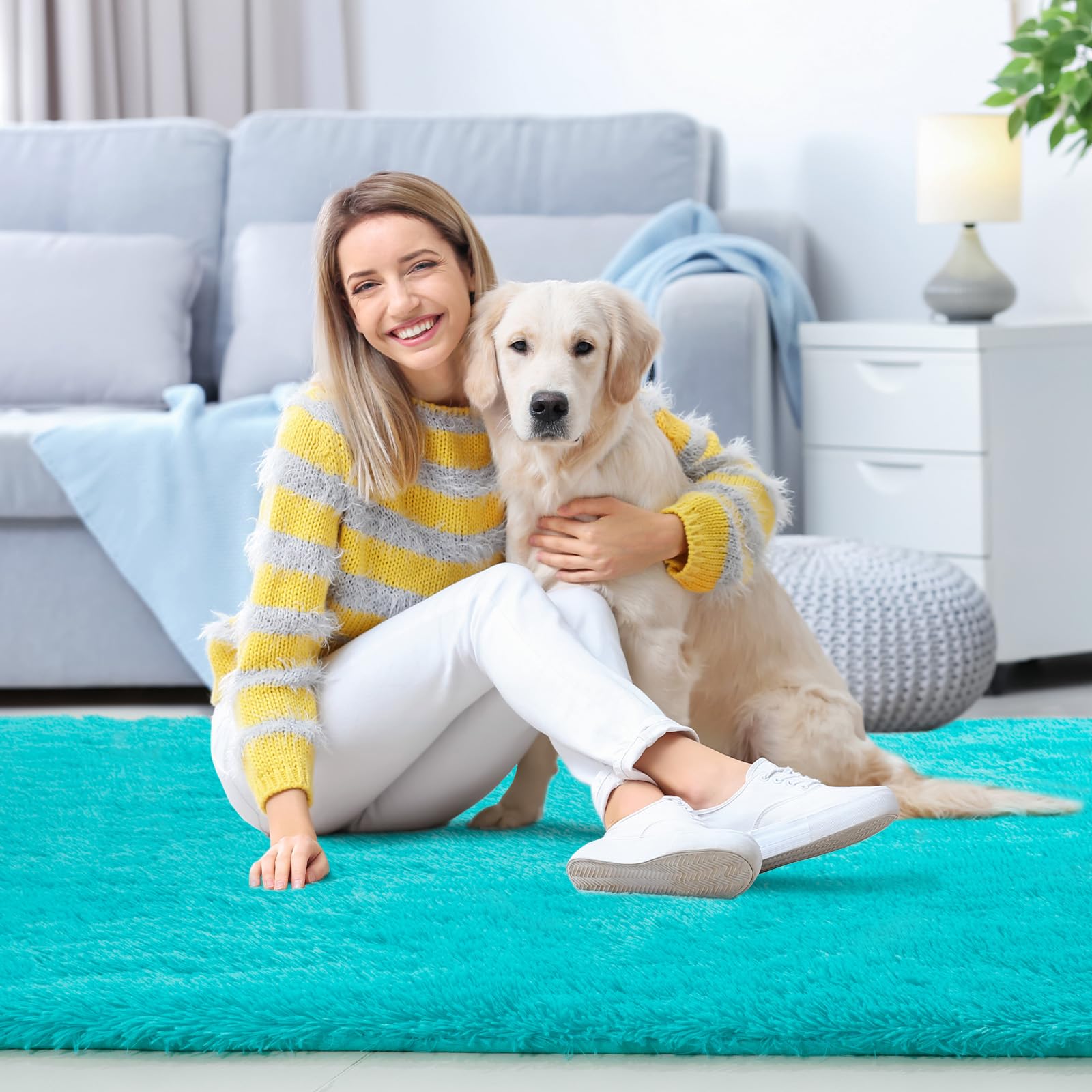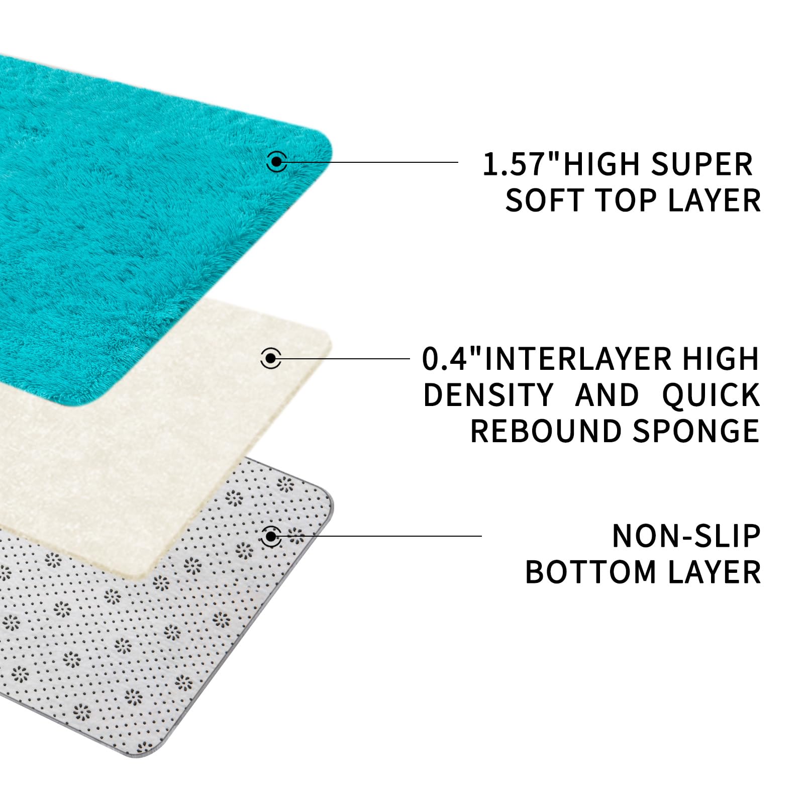【LARGE SIZE 】- Large Area Rug Shag Shaggy Carpet Soft Plush Furry Bedside Rug is approx 4 cm high, soft long hair surface, and 10mm thick sponge interlayer, not easy to shed, not easily contaminated by dust, no odor, not easy to fade.