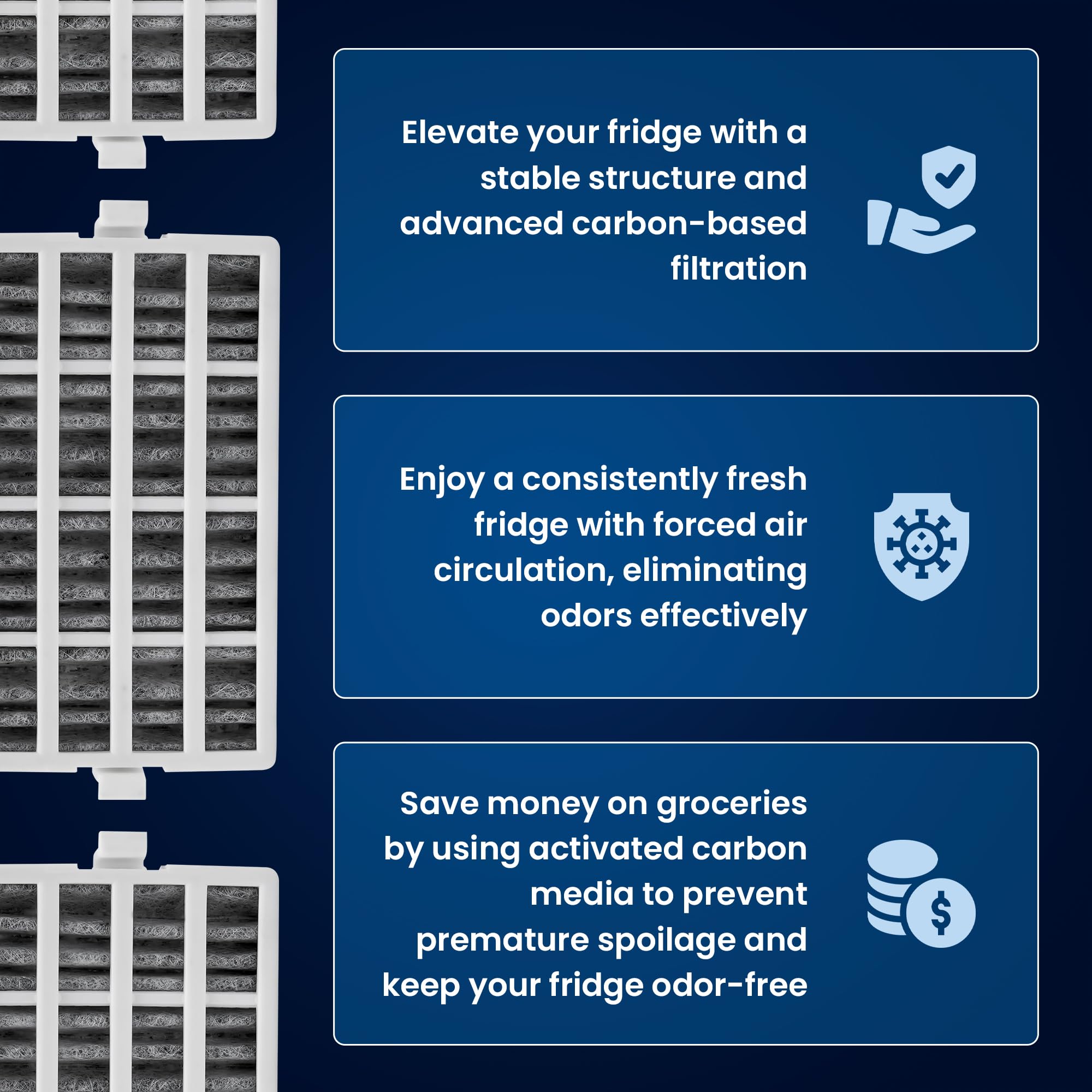 [Advanced Carbon Technology] - Our high-quality, yet affordable, air filter utilizes cutting-edge carbon technology. It acts as a powerful deodorizer, 15 times better than baking soda fridge solutions, to eradicate odors and sustain a clean, fresh environment within your fridge.