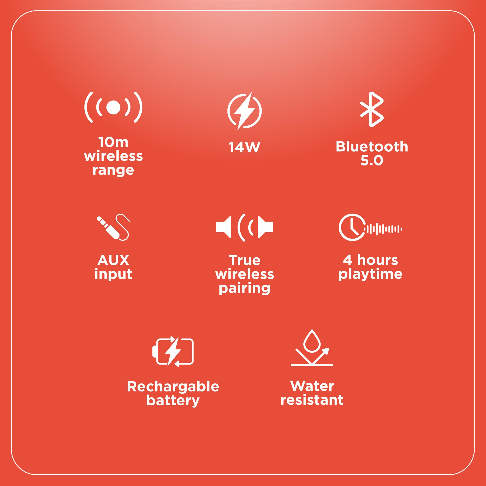 True Wireless Stereo (TWS): Pair two portable Bluetooth speakers wirelessly for stereo sound, doubling the audio power and creating a wider soundstage for an even more immersive listening experience.