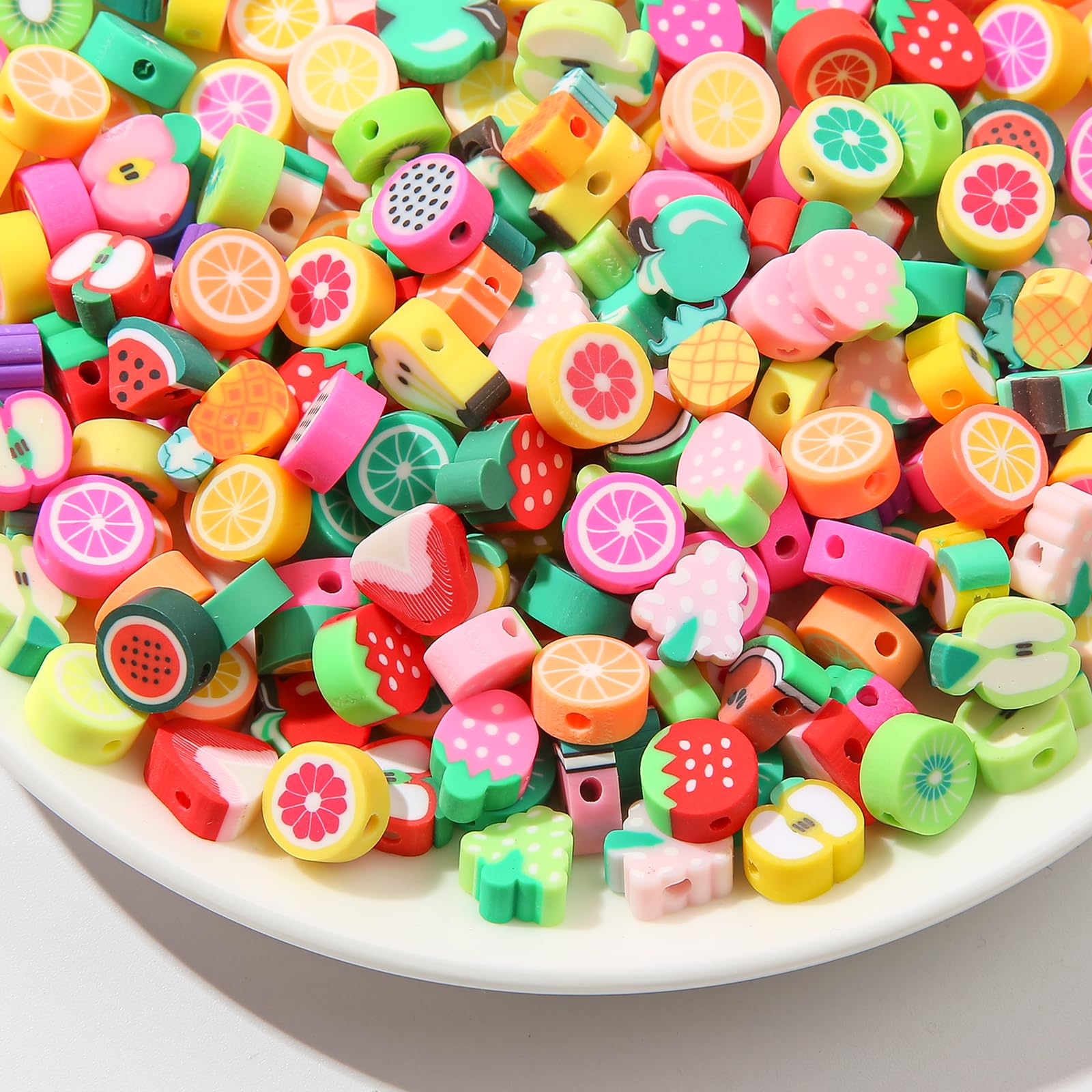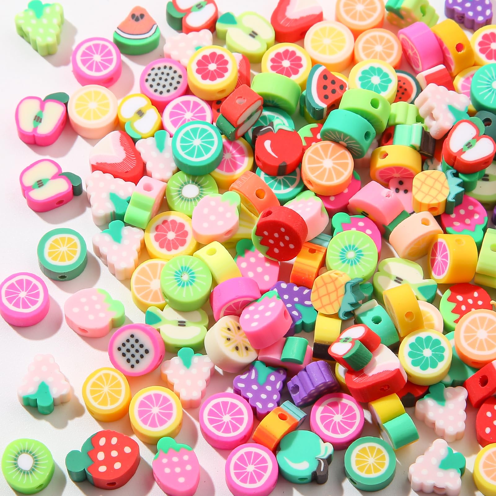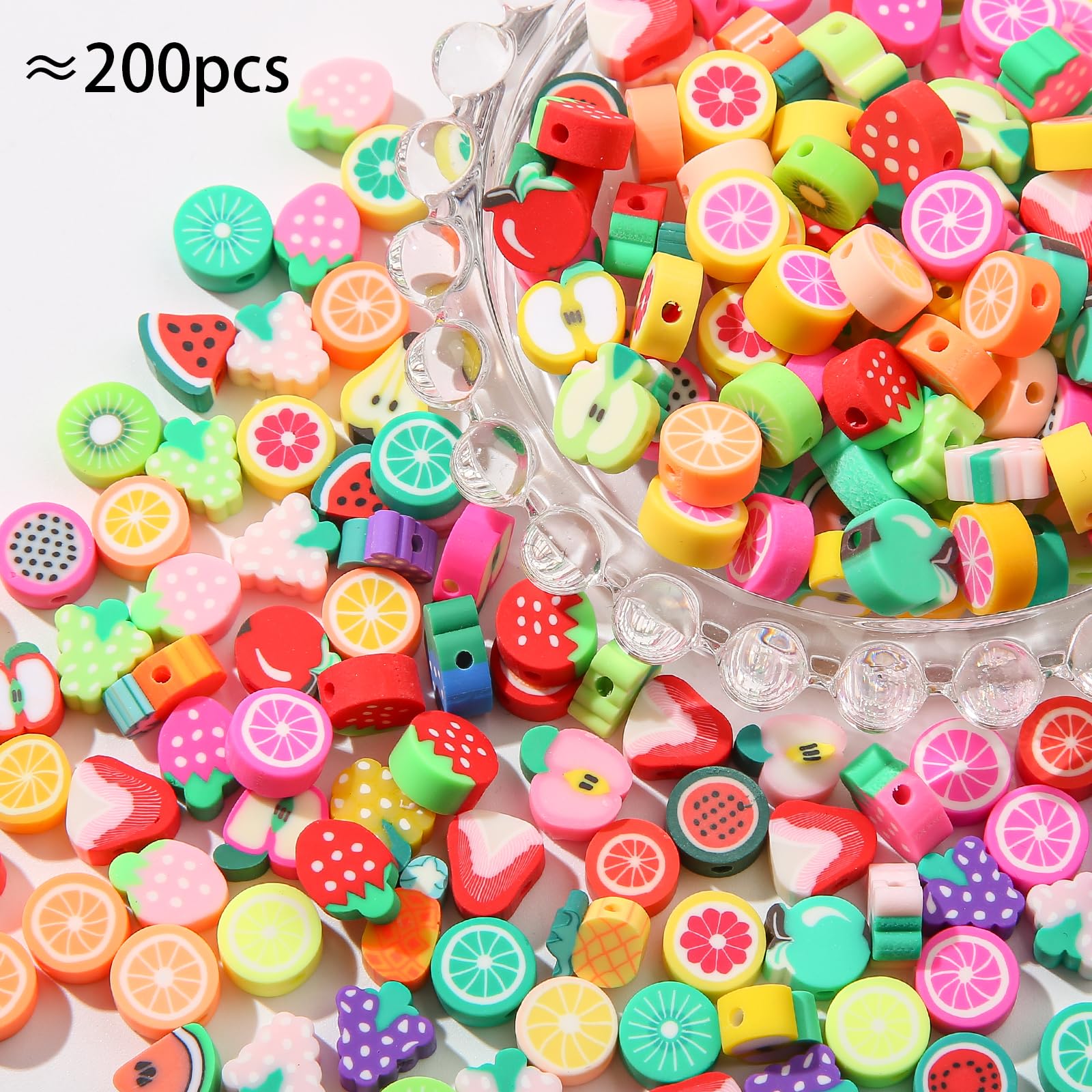 BERMRO 200pcs Fruit Polymer Clay Beads Mixed Clay Beads Fruit Charms Fruit Heishi Beads for Jewelry Crafts Making