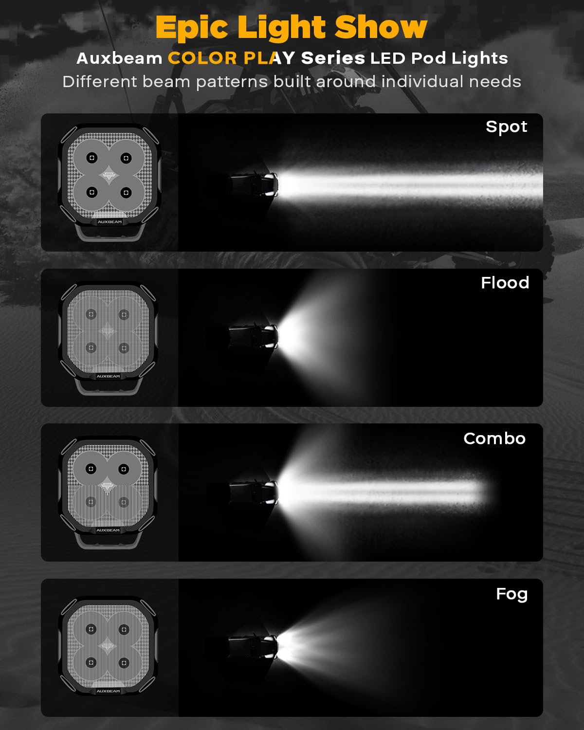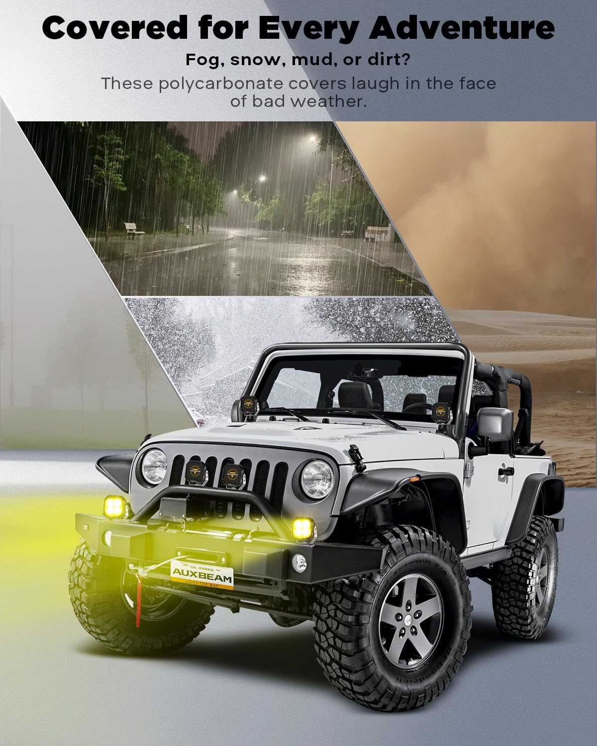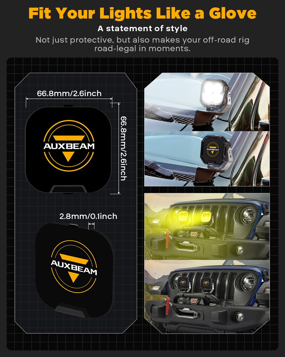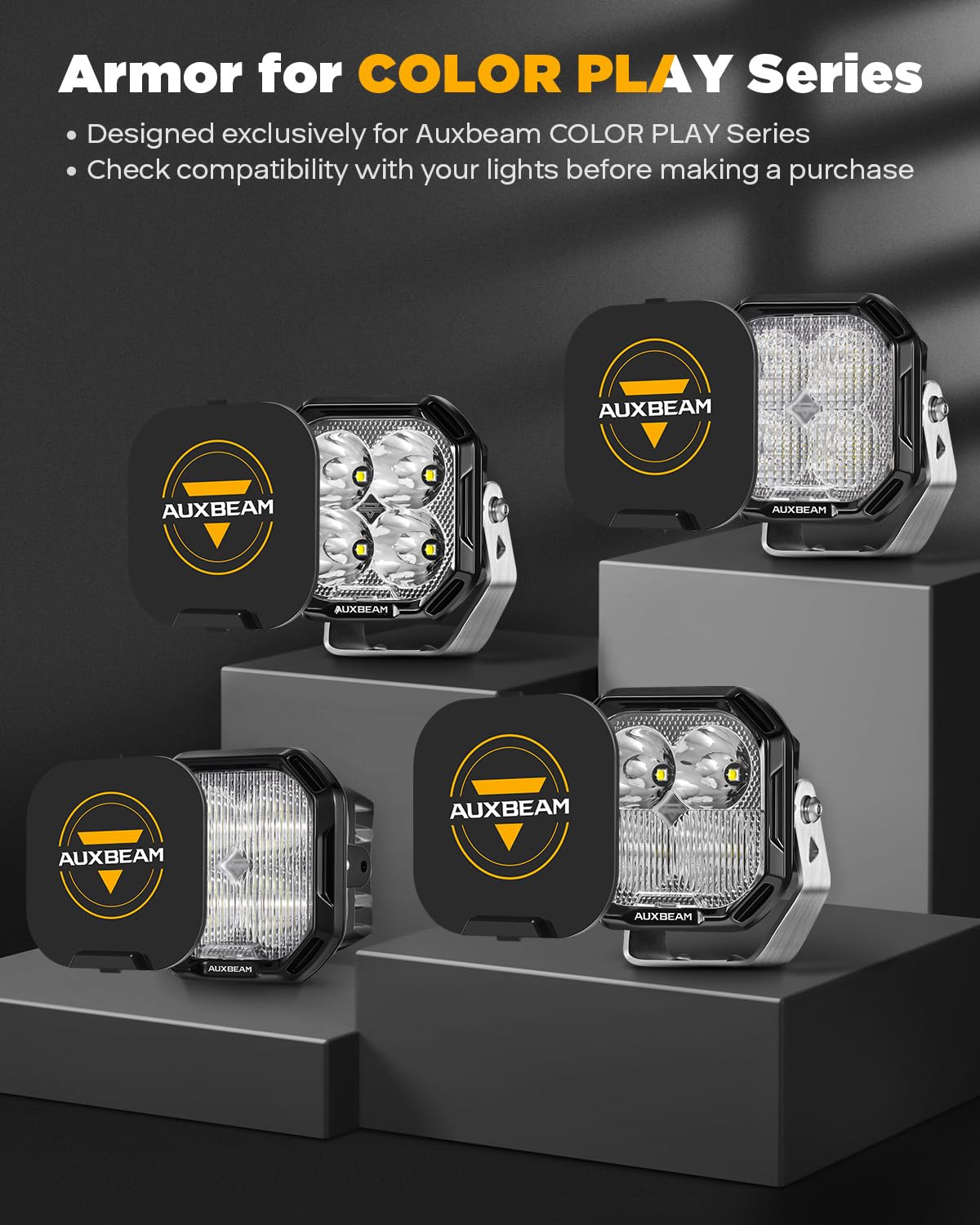 【Note before Purchasing】Specific 3 inch light pod cover is only compatible with Auxbeam Color Play Series 3inch offroad lights: ZD000865 (B0DPSG1STY) / ZD000866 (B0DPS4CFPN) / ZD000867 (B0DPSFYYV9). Please make sure your lights fit the exact model and dimension of this covers before purchasing