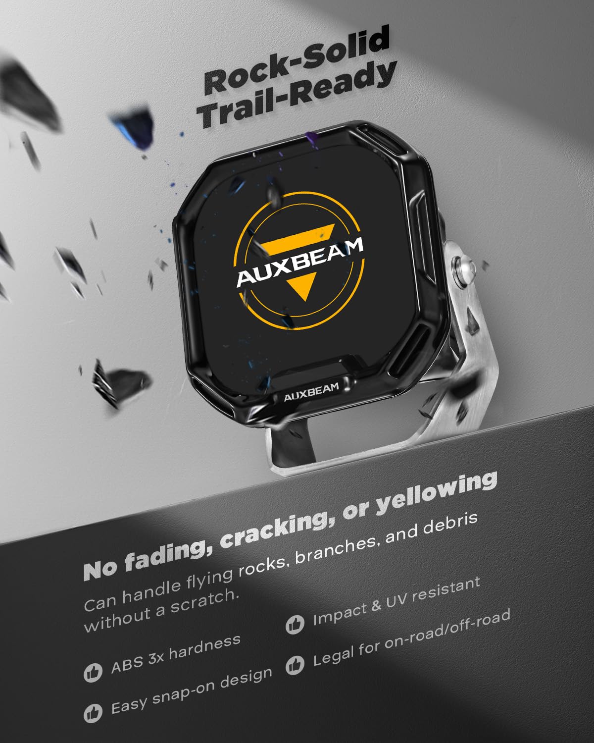 【Trustworthy Brand Guarantee】Package comes with 2x black protective covers. Auxbeam offers a 24-month guarantee and 24-hour online service commitment. Customers can contact us at any time for any pre-sales or after-sales questions. Your satisfaction is always what we strive for