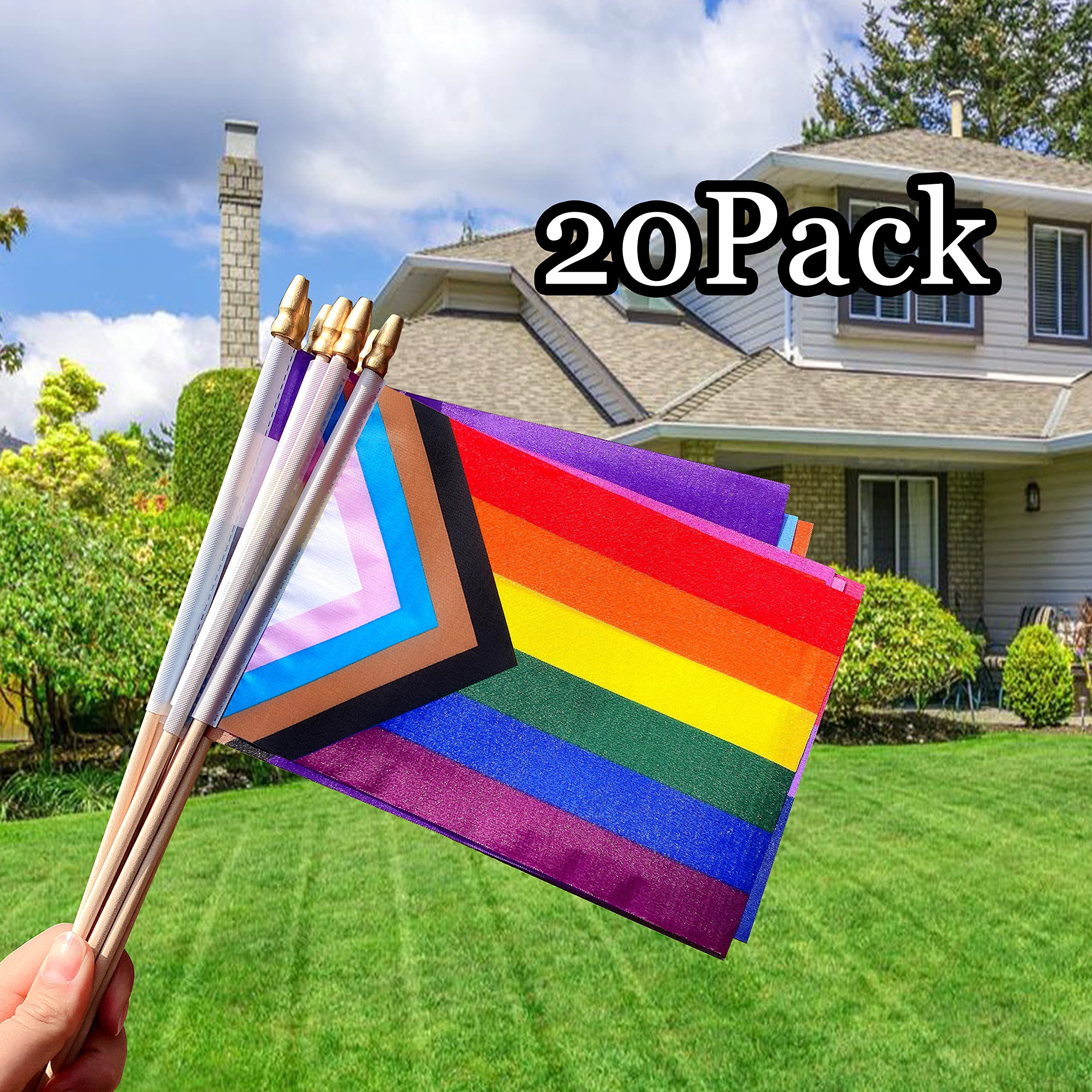 Package includes:20 Pack Progress Pride Flags.( The flag and flagpoles are separated and you need to assemble it by yourself)