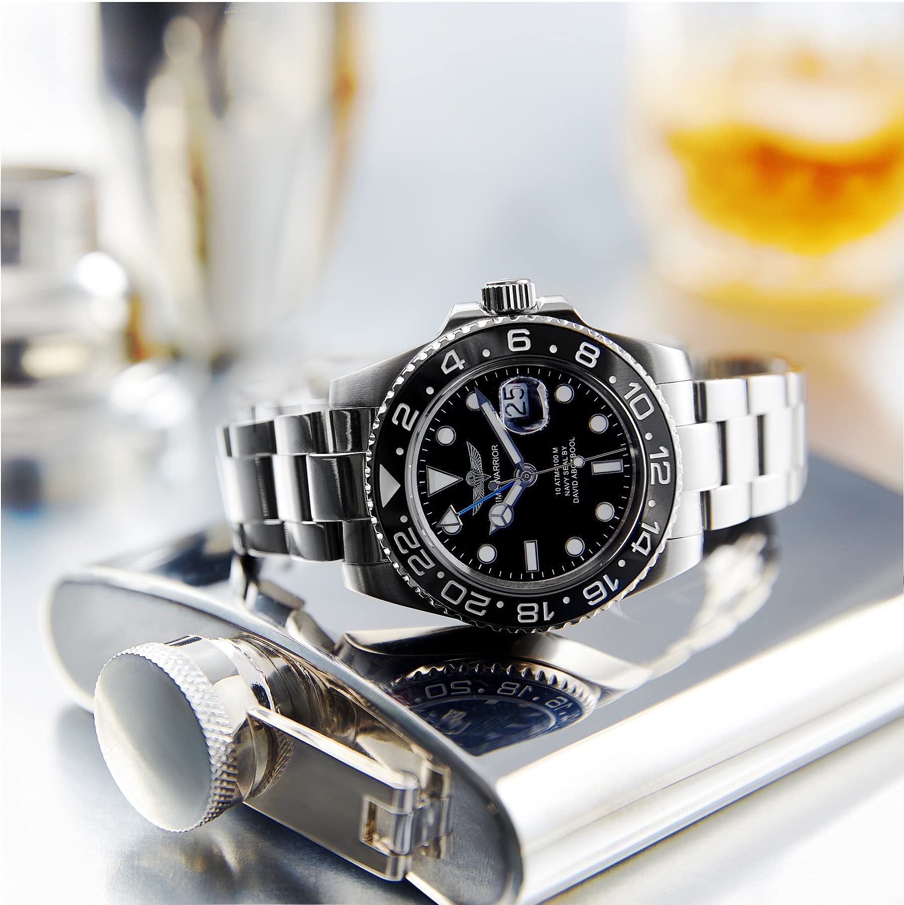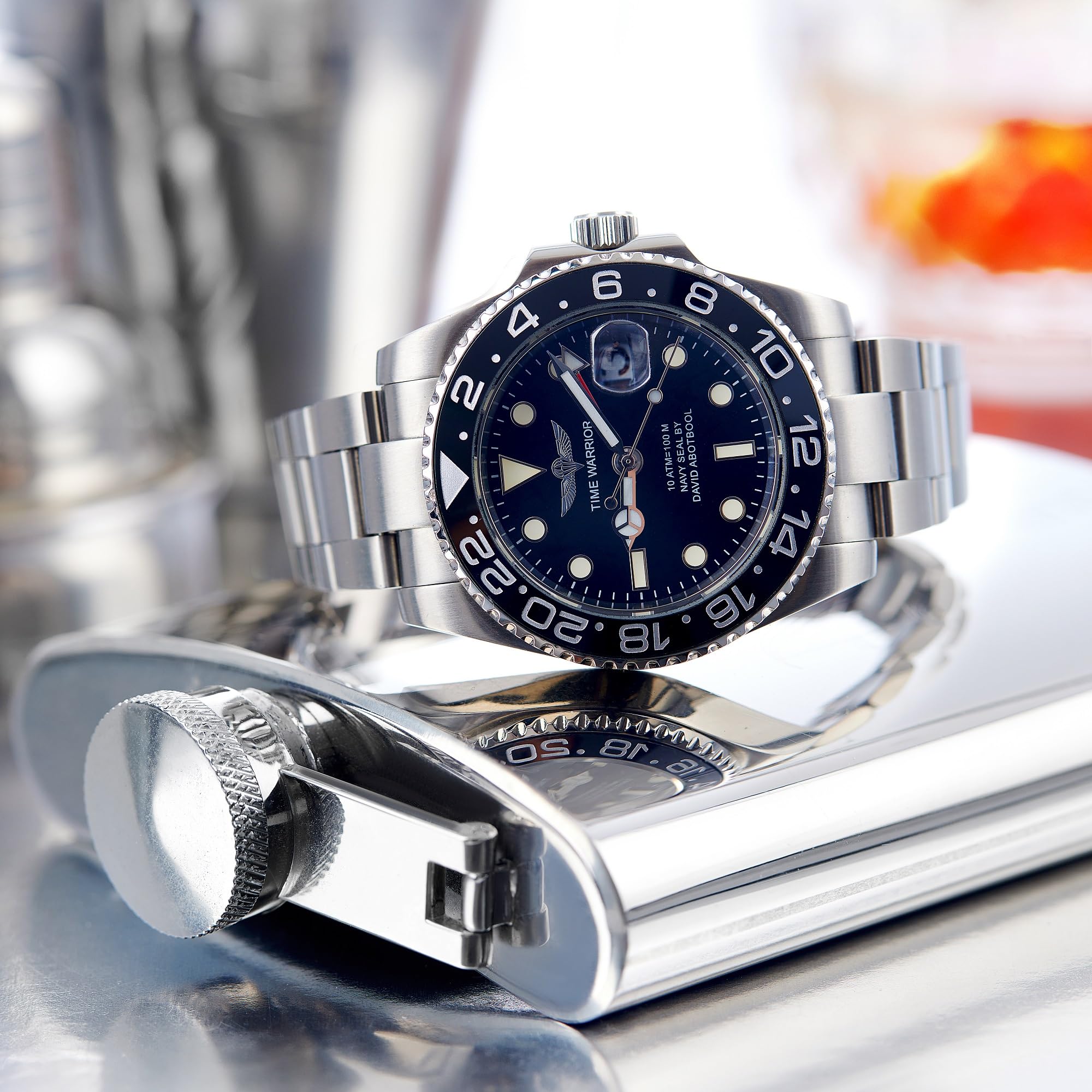 The Time Warrior Watch Series... made with the highest quality, durable 316-L Brushed stainless steel, engineered Automatic movement, GMT, rotating ceramic bezel, beautifully crafted crown logo and water resistant to 100 meters. This watch is a newly released Limited Edition and expected to increase in value every year.