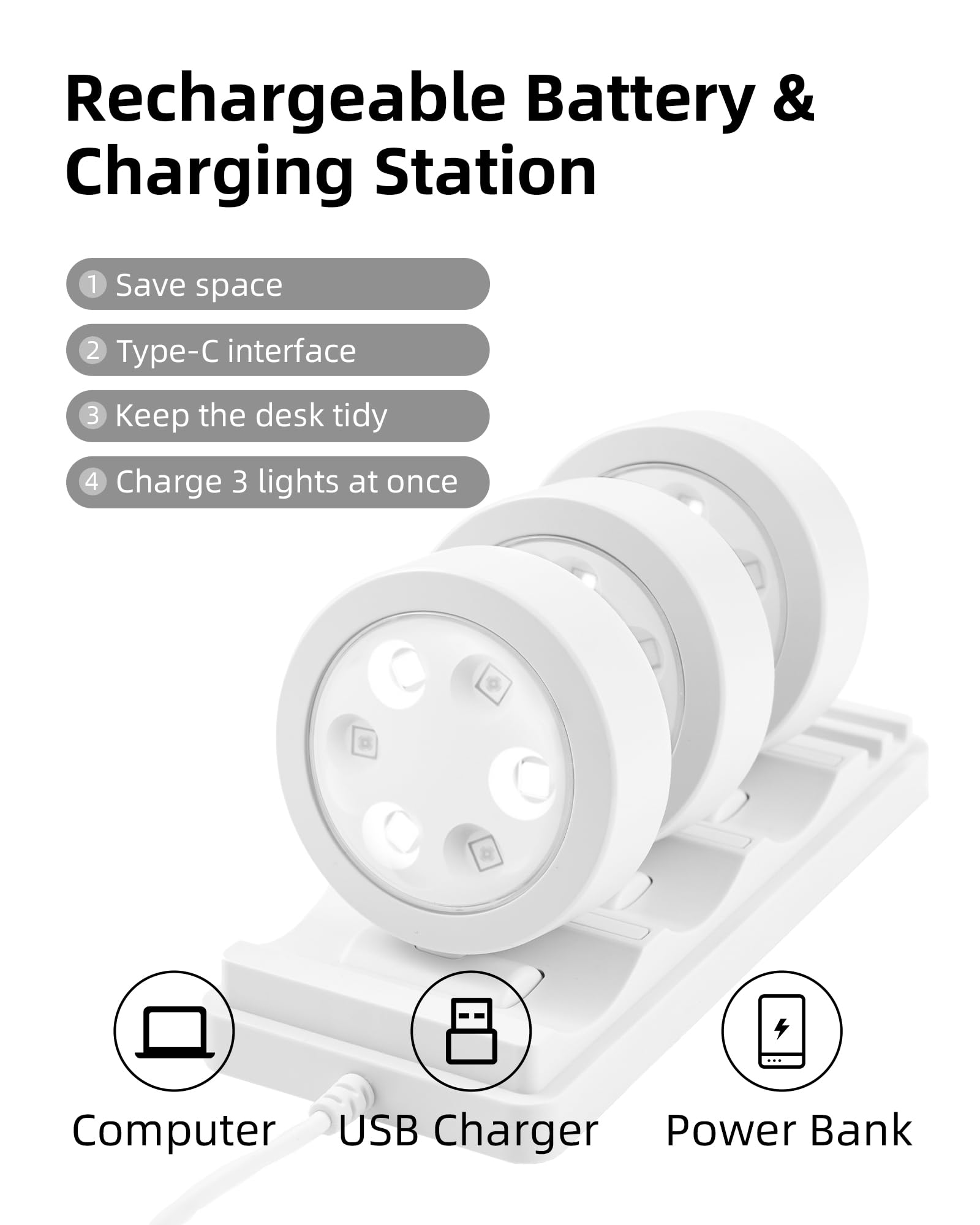 2000mAh Long-Lasting Rechargeable Battery: EZVALO wireless picture light uses 6 energy-saving LED lamp beads (others: 4 lamp beads), with built-in 2000mAh large-capacity battery, low power consumption and long lasting durability. Equipped with Type-C high-speed charging station, fully charged 3 lights in 2.5 hours!
