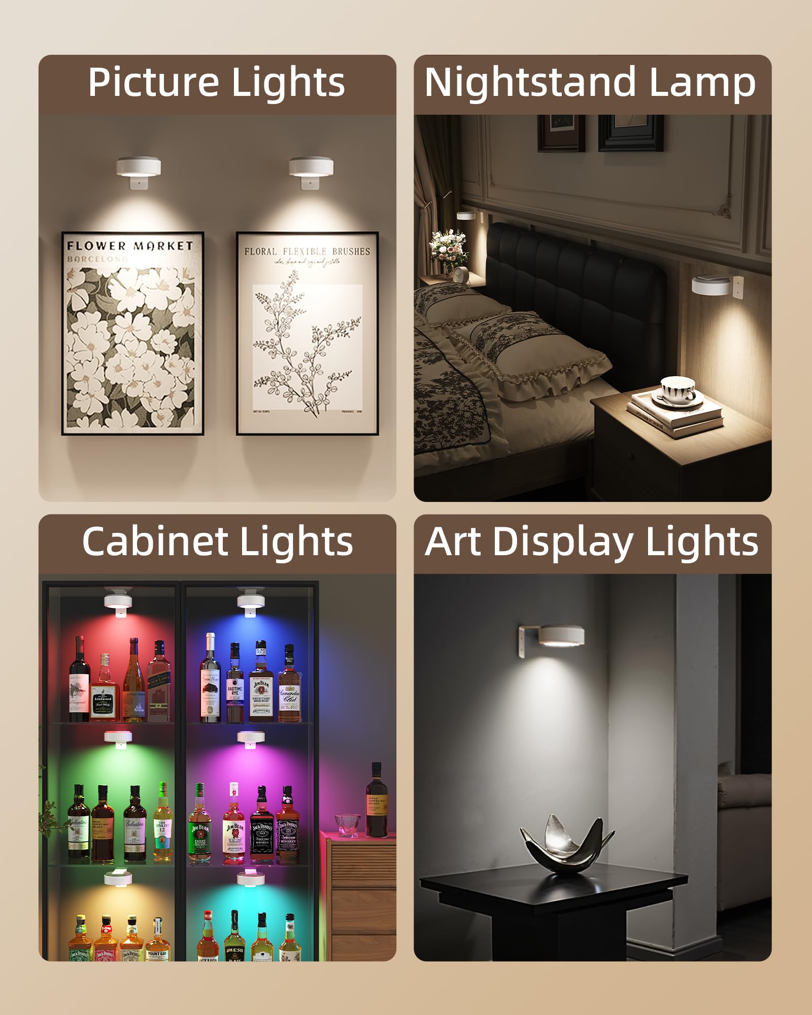 Tap & Remote Control: Easily control your painting lights for wall cordless with the included remote, or tap the lampshade to turn them on/off and adjust colors. Perfect for convenient and versatile lighting management.