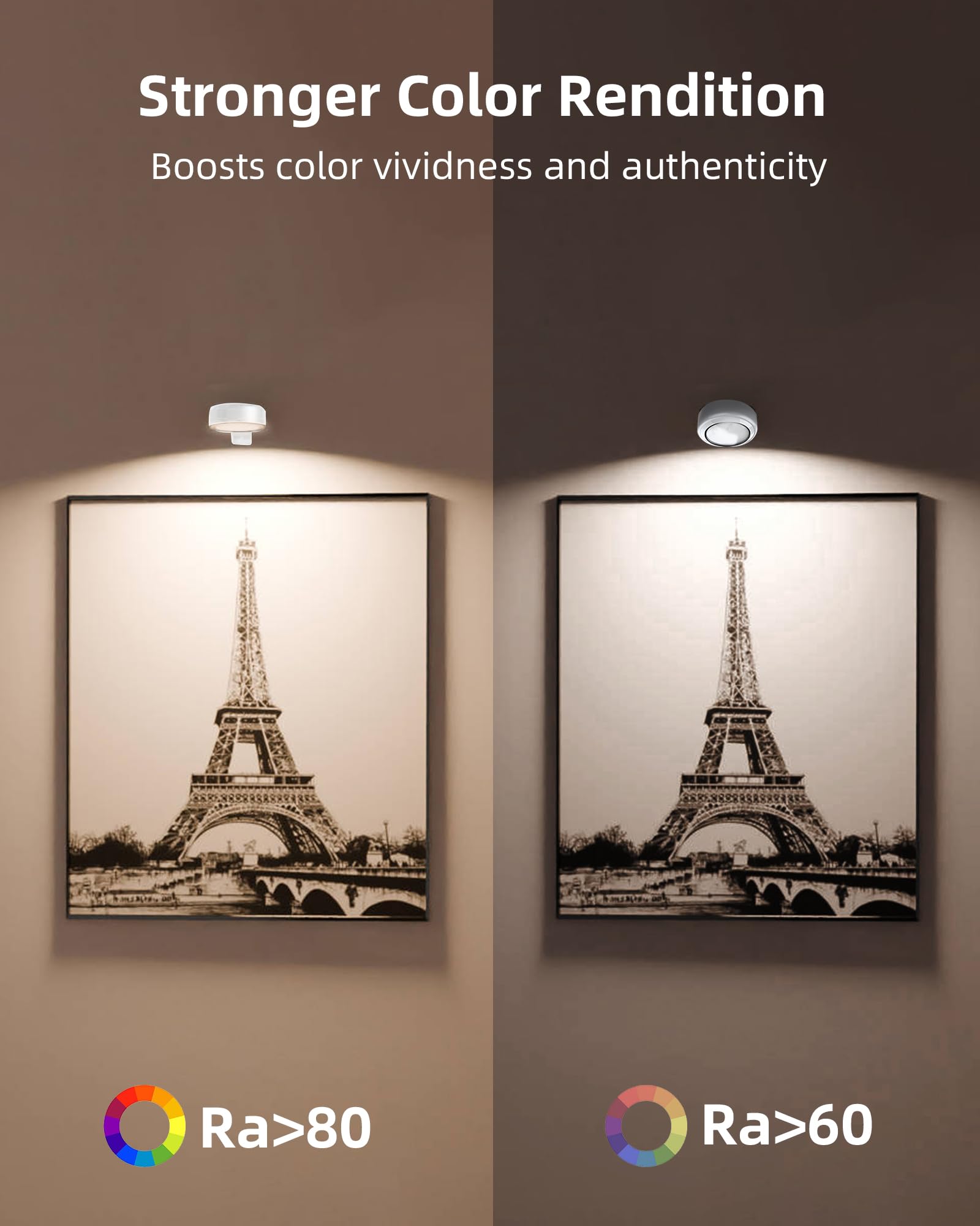 3 Color Temps & 12 RGB & 2 Dynamic Modes: EZVALO lights for pictures on wall offers 3 color temps (3000K/4200K/6500K) as well as 12 RGB colors, making it perfect for illuminating your space. You also can choose from 3 color transition modes: the flash mode, which quickly cycles through the 12 colors; and the fade mode, which smoothly transitions between colors and brightness. EZVALO rechargeable gallery light can meet your needs for both daily use and holidays.