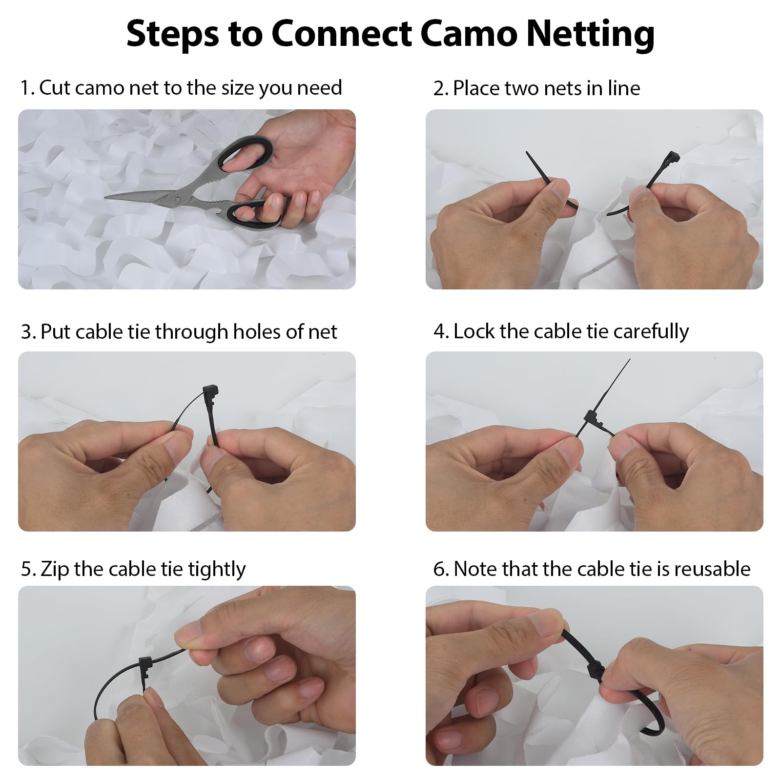 Free Cutting: Camouflage netting can be easily cut to any size; you can use zip ties to fix it. Camo net can match with a variety of background colors, so you can observe the surrounding terrain well, providing maximum concealment in the field